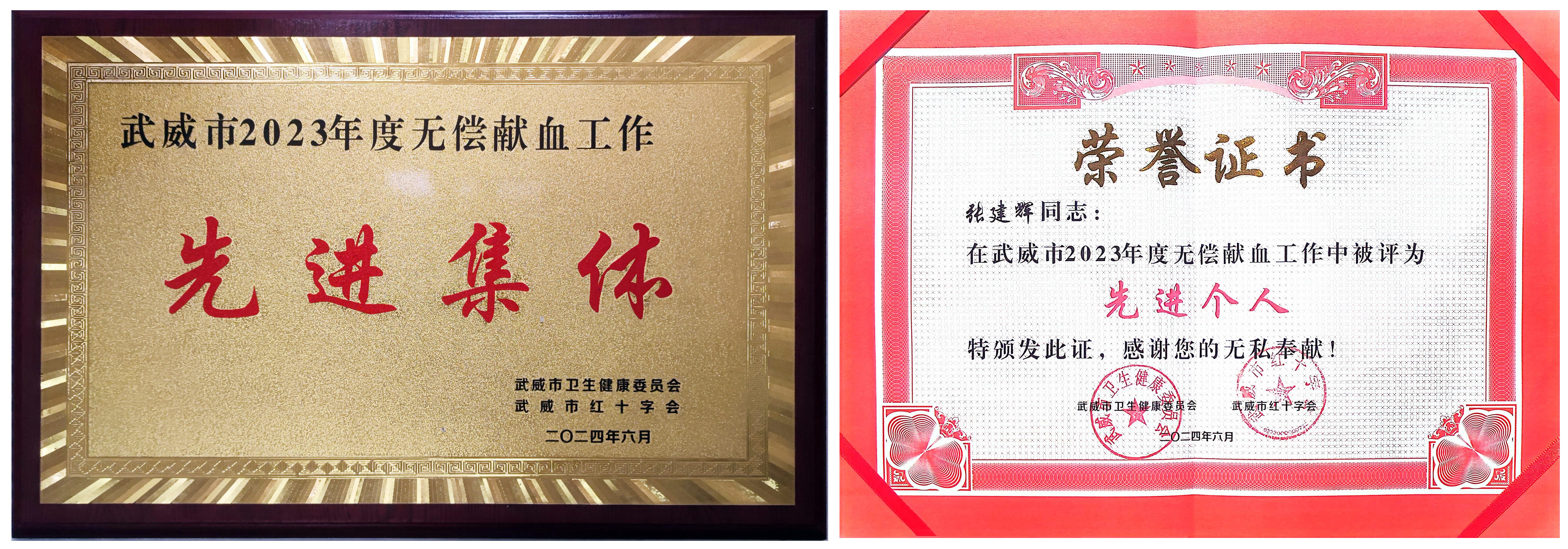 6月14日上午,我市2024年“6·14”世界獻血者日暨《武威市獻血條例》頒布宣傳活動在南城門廣場舉辦。市人大常委會副主任劉光美宣讀《條例》頒布公告,并為全市2023年度無償獻血工作先進集體、應急獻血先進集體和先進個人頒發(fā)獎牌和榮譽證書。學校被評為武威市2023年度無償獻血工作先進集體,1名教師被評為先進個人。