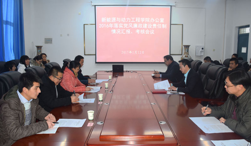 1月12日下午,學(xué)院副院長田迎春帶領(lǐng)學(xué)院第六考核組,對新能源與動力工程學(xué)院辦公室2016年度黨風廉政建設(shè)和反腐敗工作進行了全面檢查考核。新能源與動力工程學(xué)院全體教職工參加了會議。