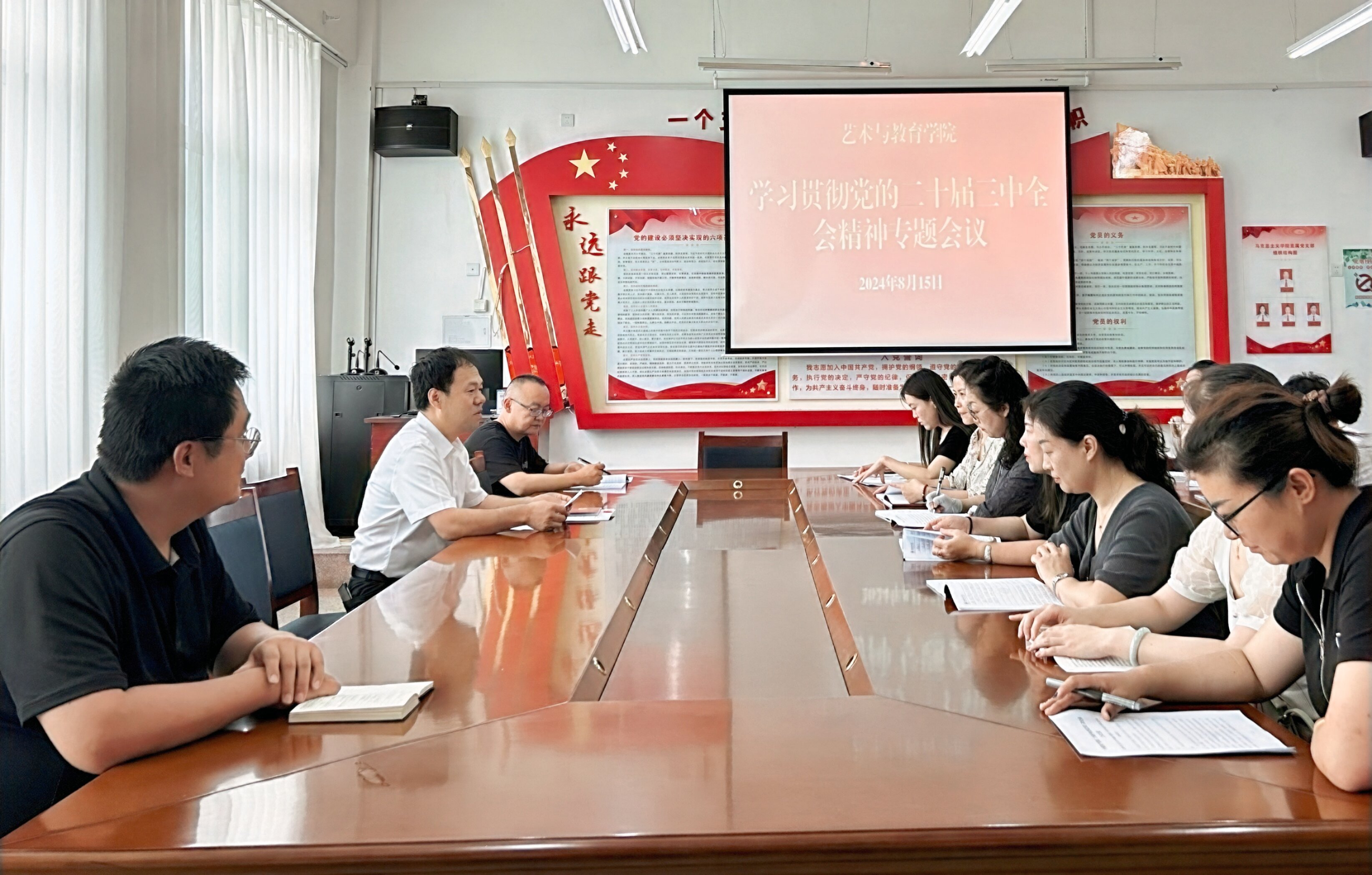 8月15日,藝術與教育學院召開黨的二十屆三中全會精神專題學習會議,傳達學習《習近平總書記關于<中共中央關于進一步全面深化改革、推進中國式現(xiàn)代化的決定>的說明》《中國共產(chǎn)黨第二十屆中央委員會第三次全體會議公報》《中共中央關于進一步全面深化改革推進中國式現(xiàn)代化的決定》,以及《深化教育綜合改革》等內(nèi)容。會議由學院黨總支書記王政主持,全體教職工參加會議。
