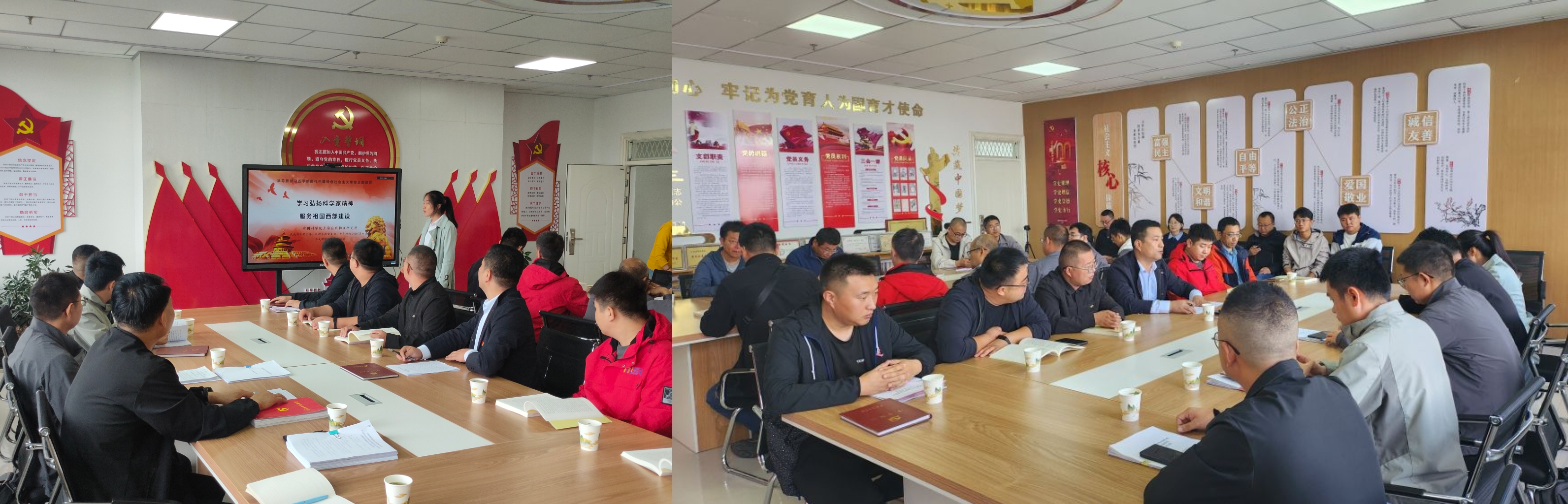 參觀結(jié)束后,全體黨員在中科低碳新能源技術(shù)學(xué)院黨員活動室進(jìn)行了交流研討。期間,中國科學(xué)院上海應(yīng)用物理研究所武威園區(qū)黨支部支部書記趙先堂首先介紹了來訪的人員和此次聯(lián)合黨建的目的,之后上海應(yīng)物所武威園區(qū)辦副主任嚴(yán)慧娟講了題為《學(xué)習(xí)弘揚(yáng)科學(xué)家精神 服務(wù)祖國西部建設(shè)》的主題黨課,中科低碳新能源技術(shù)學(xué)院黨總支書記、院長黃述杰以“創(chuàng)建基層黨建品牌,引領(lǐng)教育教學(xué)改革發(fā)展”為主題,介紹了學(xué)院黨總支基本情況和學(xué)院黨支部標(biāo)準(zhǔn)化建設(shè)情況,雙方就黨建工作中好的做法和經(jīng)驗(yàn)進(jìn)行了分享和交流。