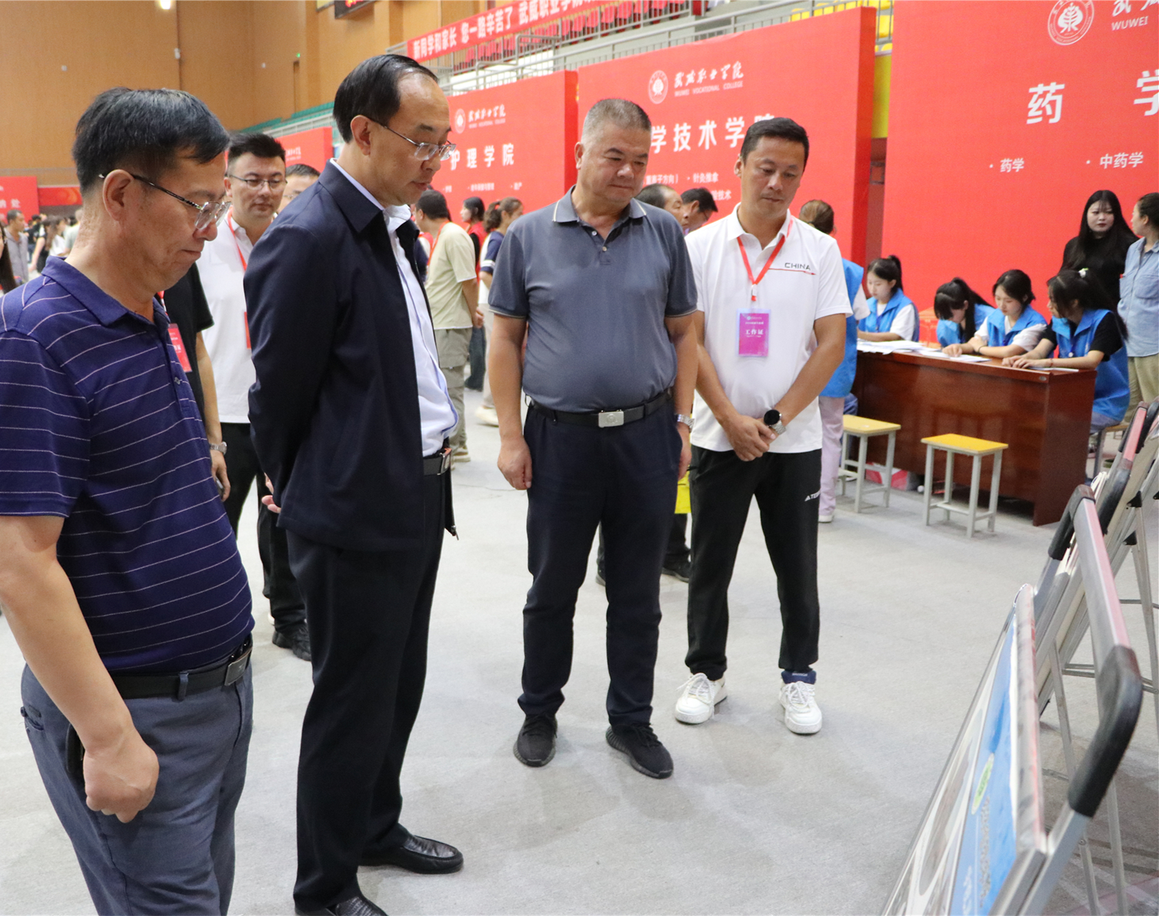 校領(lǐng)導一一走過新生報到處、綠色通道、繳費處和各二級學院迎新報到點,了解新生報到情況,仔細詢問智慧學工平臺使用情況,親切問候堅守崗位的師生志愿者。在醫(yī)學技術(shù)學院報到點前,王宏與2024級放射治療技術(shù)(重離子方向)新生及家長聊了起來——“歡迎你們來到武威職業(yè)學院學習!為什么會報考這個專業(yè)?”在得知學生家庭中有人從事重離子醫(yī)療領(lǐng)域的研發(fā)工作時,王宏勉勵新生要努力學好專業(yè)、練好技能,爭做高素質(zhì)技術(shù)技能人才。在家長休息區(qū),王宏與來自甘肅慶陽的新生家長親切交談,并介紹了學校的辦學情況,建議學生和家長在校園里走一走看一看,多了解熟悉學校,幫助學生盡快適應大學生活,并祝愿學生家長在武期間,一切順利。
