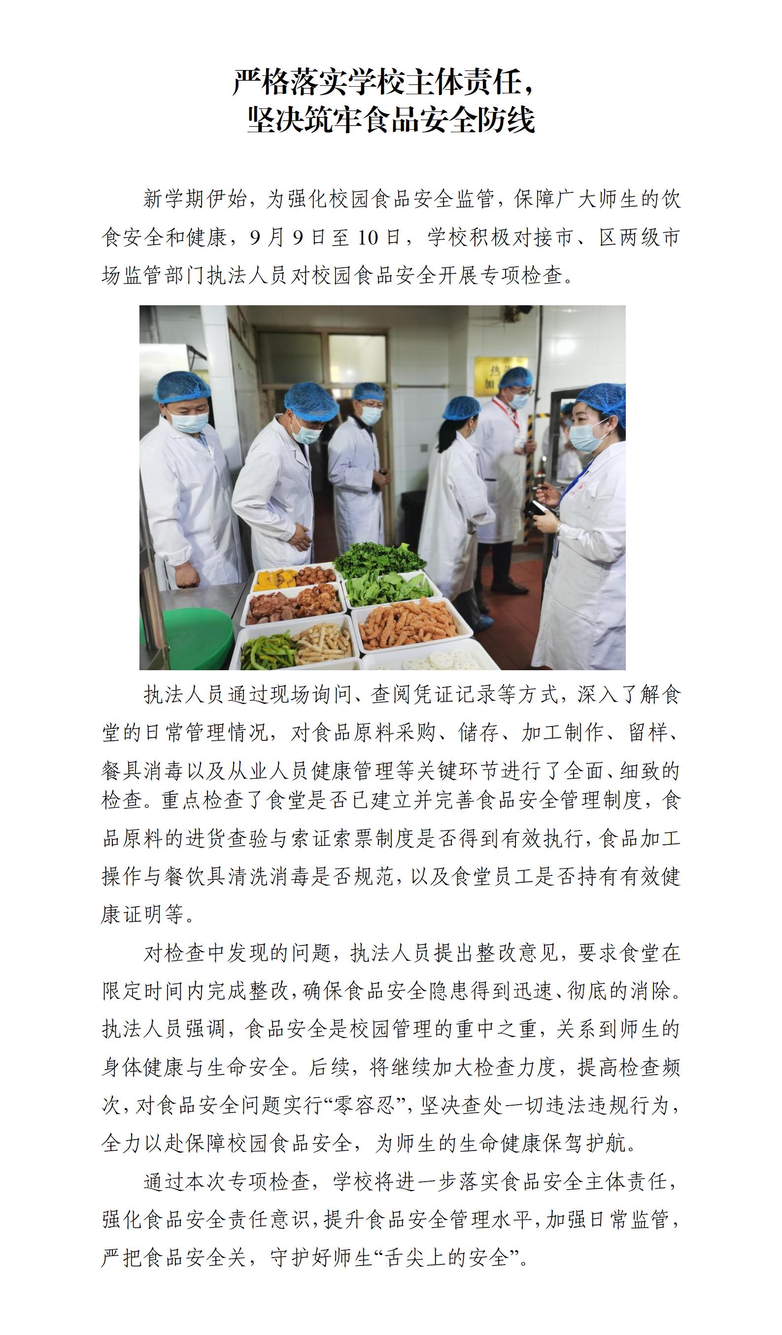 嚴(yán)格落實(shí)學(xué)校主體責(zé)任,堅(jiān)決筑牢食品安全防線