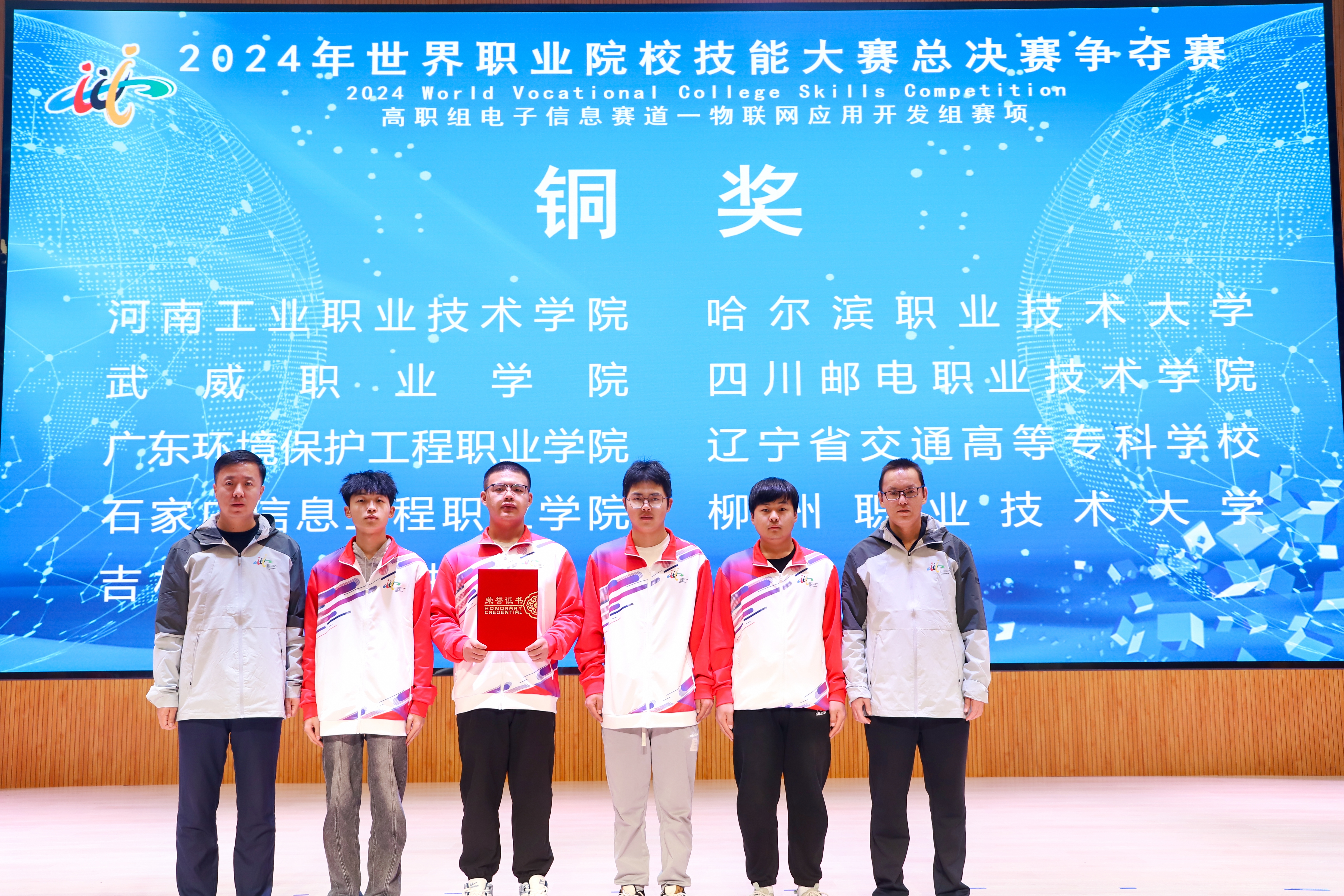 學(xué)校在2024年世界職業(yè)院校技能大賽爭奪賽高職組電子信息賽道物聯(lián)網(wǎng)應(yīng)用開發(fā)賽項(xiàng)中榮獲銅獎(jiǎng)