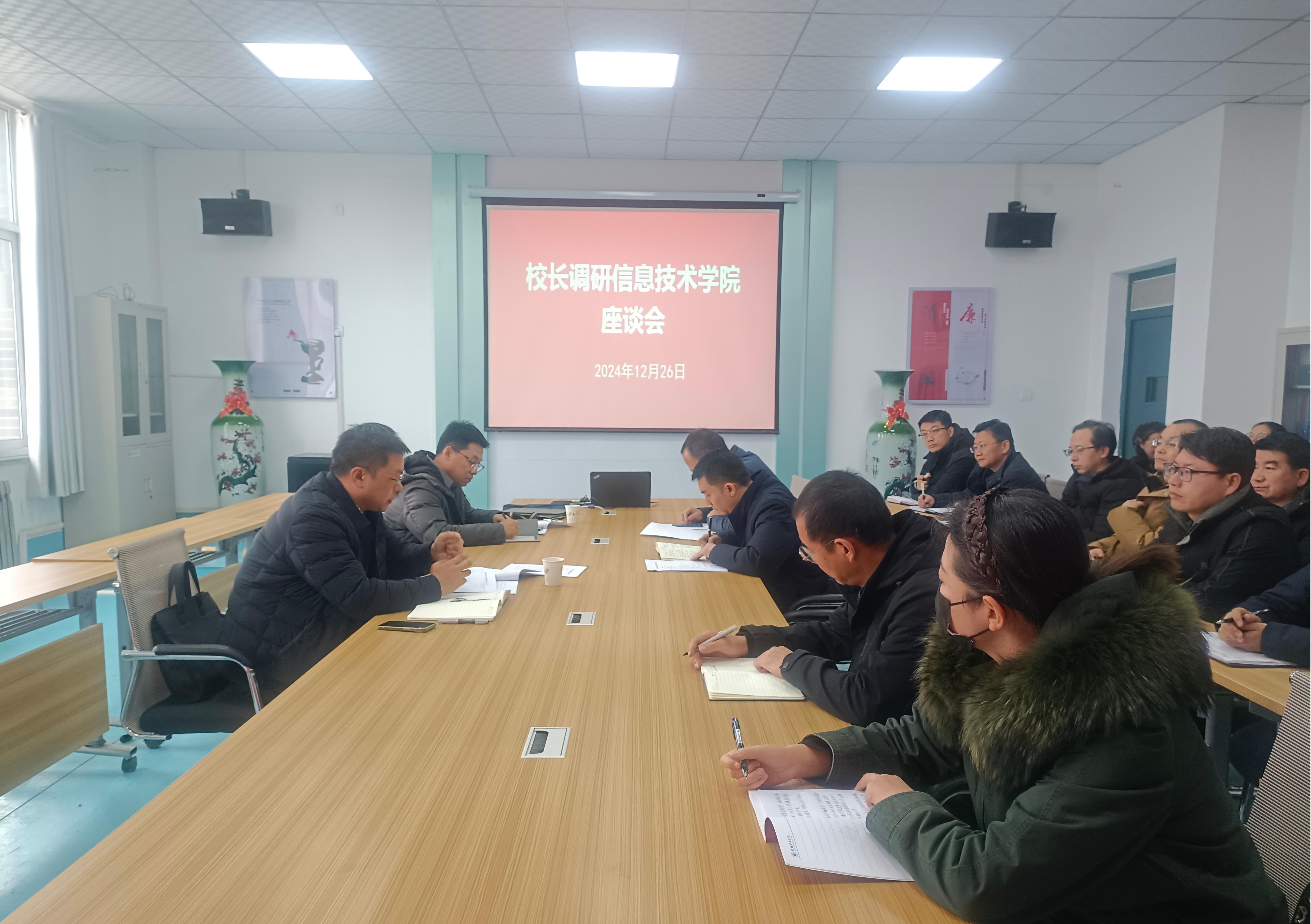 12月26日,校長李海軍深入信息技術學院,通過實地走訪、座談交流等形式開展調研,辦公室主任董鵬陪同調研。信息技術學院負責人和教師代表參加了調研活動。