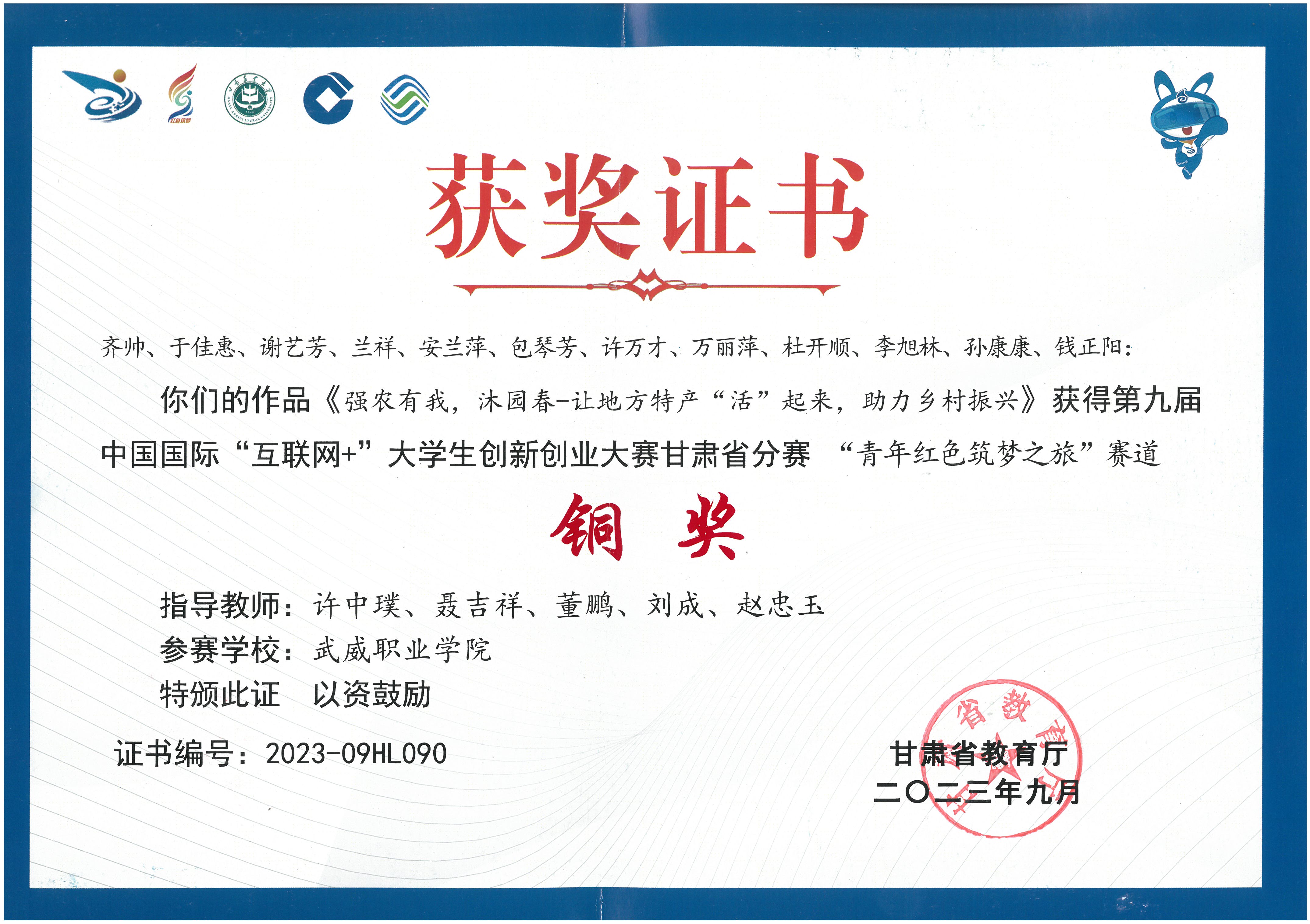學(xué)生獲第九屆中國國際“互聯(lián)網(wǎng)+”大學(xué)生創(chuàng)新創(chuàng)業(yè)大賽甘肅賽區(qū)銅獎(jiǎng)