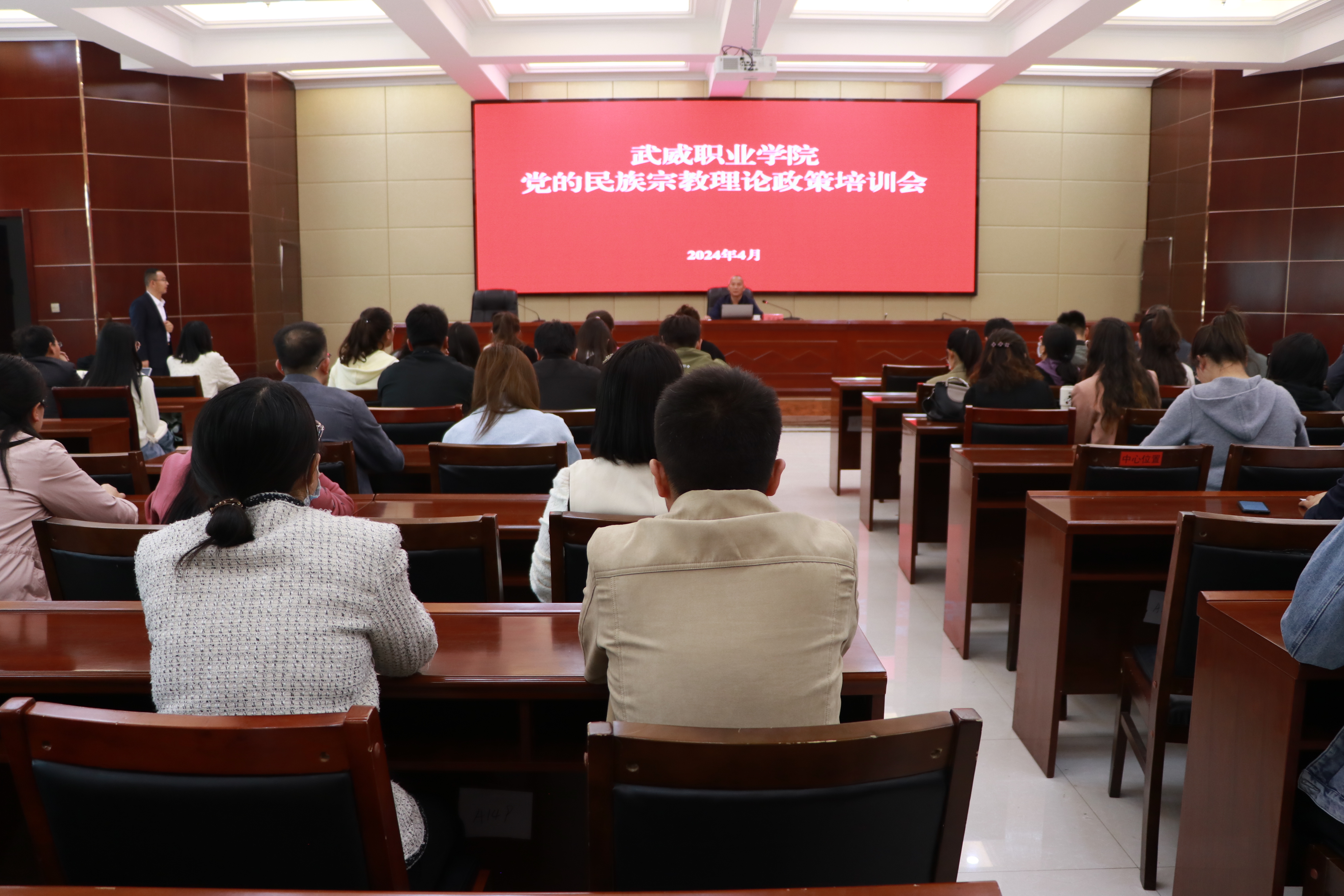 為引導(dǎo)各民族學(xué)習(xí)宣傳貫徹黨的二十大精神和習(xí)近平總書記關(guān)于加強和改進民族工作的重要思想,扎實開展第21個民族團結(jié)進步宣傳月活動,推動全校師生全力做好鑄牢中華民族共同體意識宣傳教育、加強民族團結(jié)進步創(chuàng)建,4月26日下午,學(xué)校在行樹樓北側(cè)報告廳舉行黨的民族宗教理論政策培訓(xùn)會。宣傳統(tǒng)戰(zhàn)部全體人員、馬克思主義學(xué)院選派的部分思政課教師、各二級學(xué)院輔導(dǎo)員、班主任代表等100余人參加培訓(xùn)會。