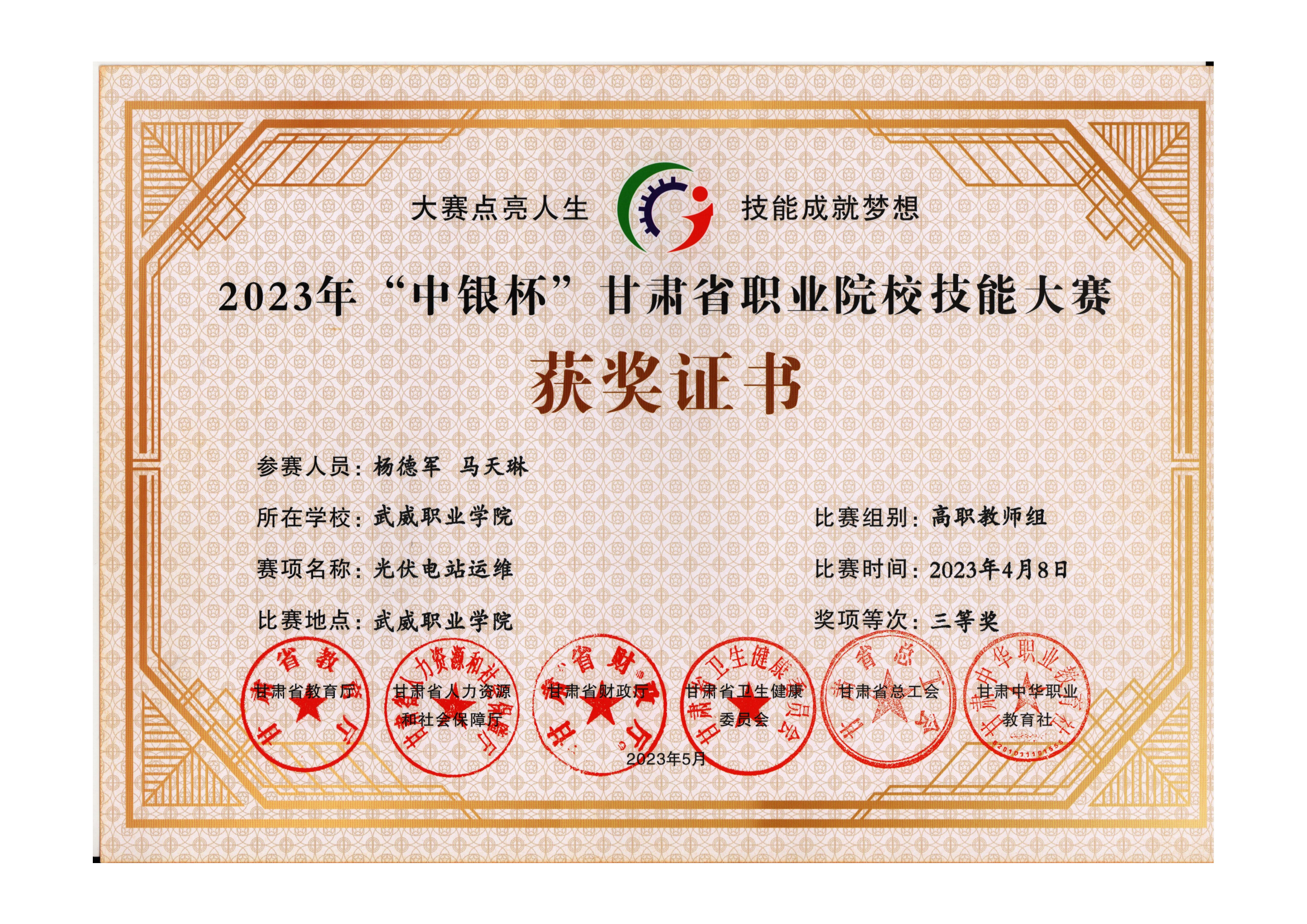 2023年甘肅省職業(yè)院校技能大賽光伏電站運(yùn)維賽項(xiàng)(高職教師組)獲獎情況