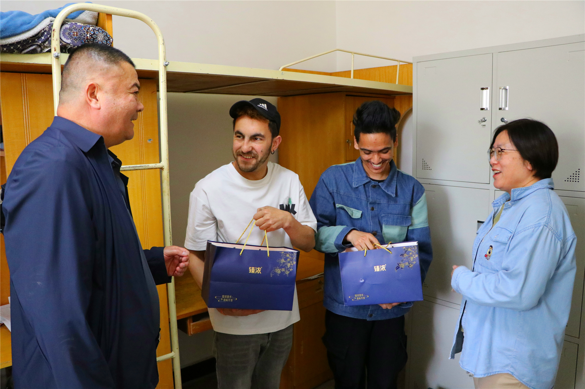 端午將至,為更好開展留學(xué)生教育管理工作,使我校來(lái)華留學(xué)生更好地認(rèn)識(shí)和體驗(yàn)中國(guó)傳統(tǒng)節(jié)日文化,5月30日,學(xué)校黨委副書記、副校長(zhǎng)張開禮,黨委副書記翟存祥,黨委委員、副校長(zhǎng)王守云一行與國(guó)際合作交流處全體工作人員走進(jìn)留學(xué)生公寓,給留學(xué)生們送去節(jié)日的關(guān)懷和溫暖。