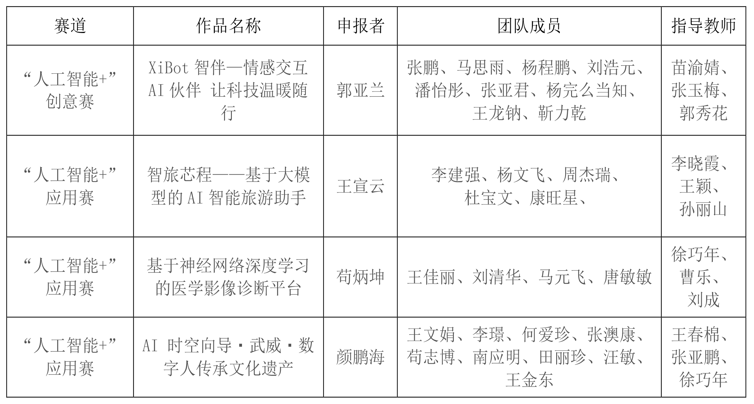 根據(jù)《挑戰(zhàn)杯|第十九屆“挑戰(zhàn)杯”中國(guó)移動(dòng)全國(guó)大學(xué)生課外學(xué)術(shù)科技作品競(jìng)賽來(lái)啦》推文,經(jīng)自主申報(bào),校團(tuán)委審核,擬推薦以下作品參加第十九屆“挑戰(zhàn)杯”全國(guó)大學(xué)生課外學(xué)術(shù)科技作品競(jìng)賽“人工智能+”專項(xiàng)賽,現(xiàn)予以公示。