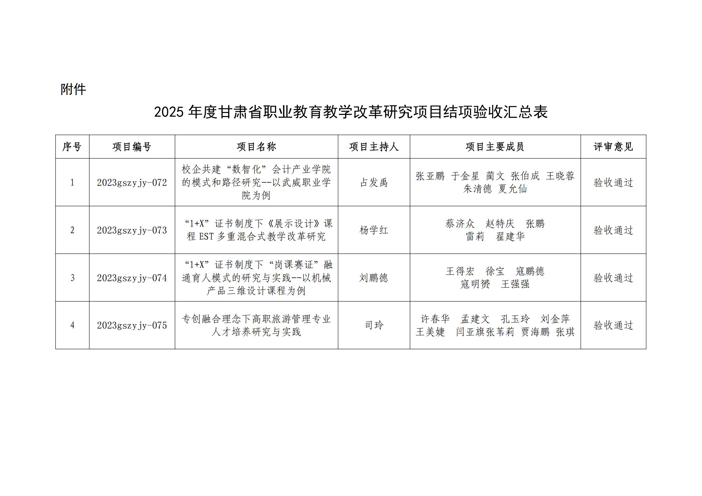 關(guān)于甘肅省職業(yè)教育教學改革研究項目結(jié)項驗收校級評審結(jié)果的…