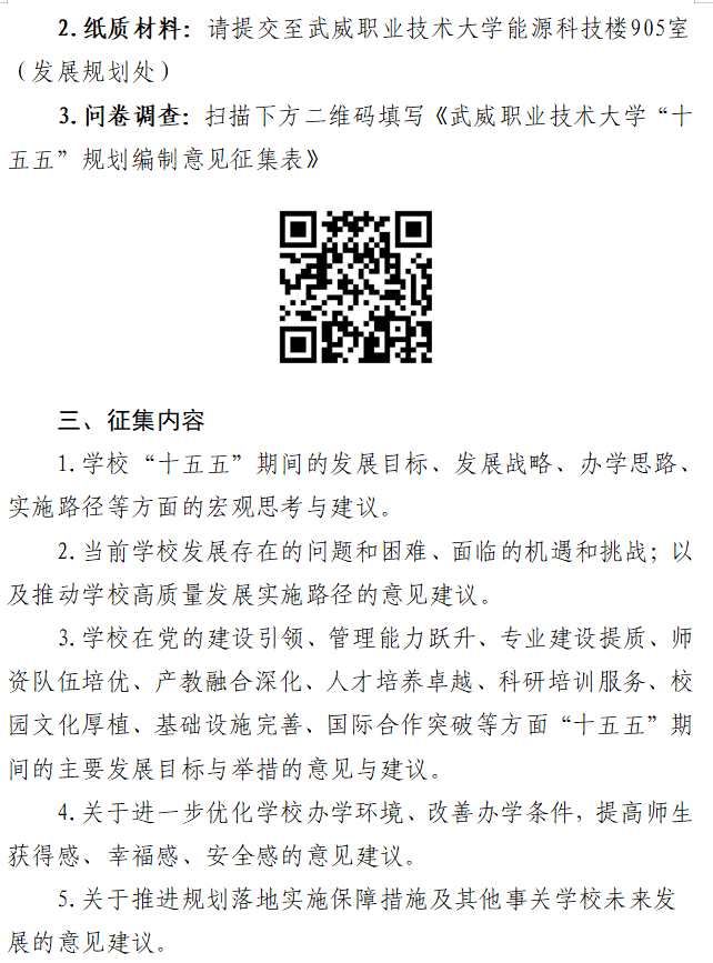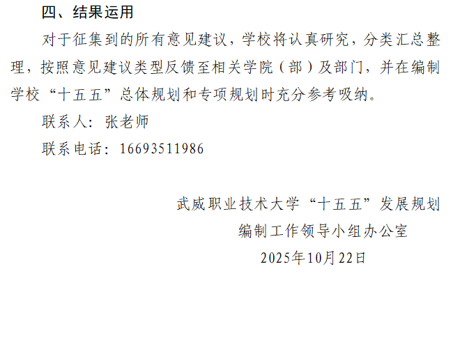 武威職業(yè)技術(shù)大學(xué)關(guān)于公開(kāi)征集“十五五”規(guī)劃編制意見(jiàn)建議的通知
