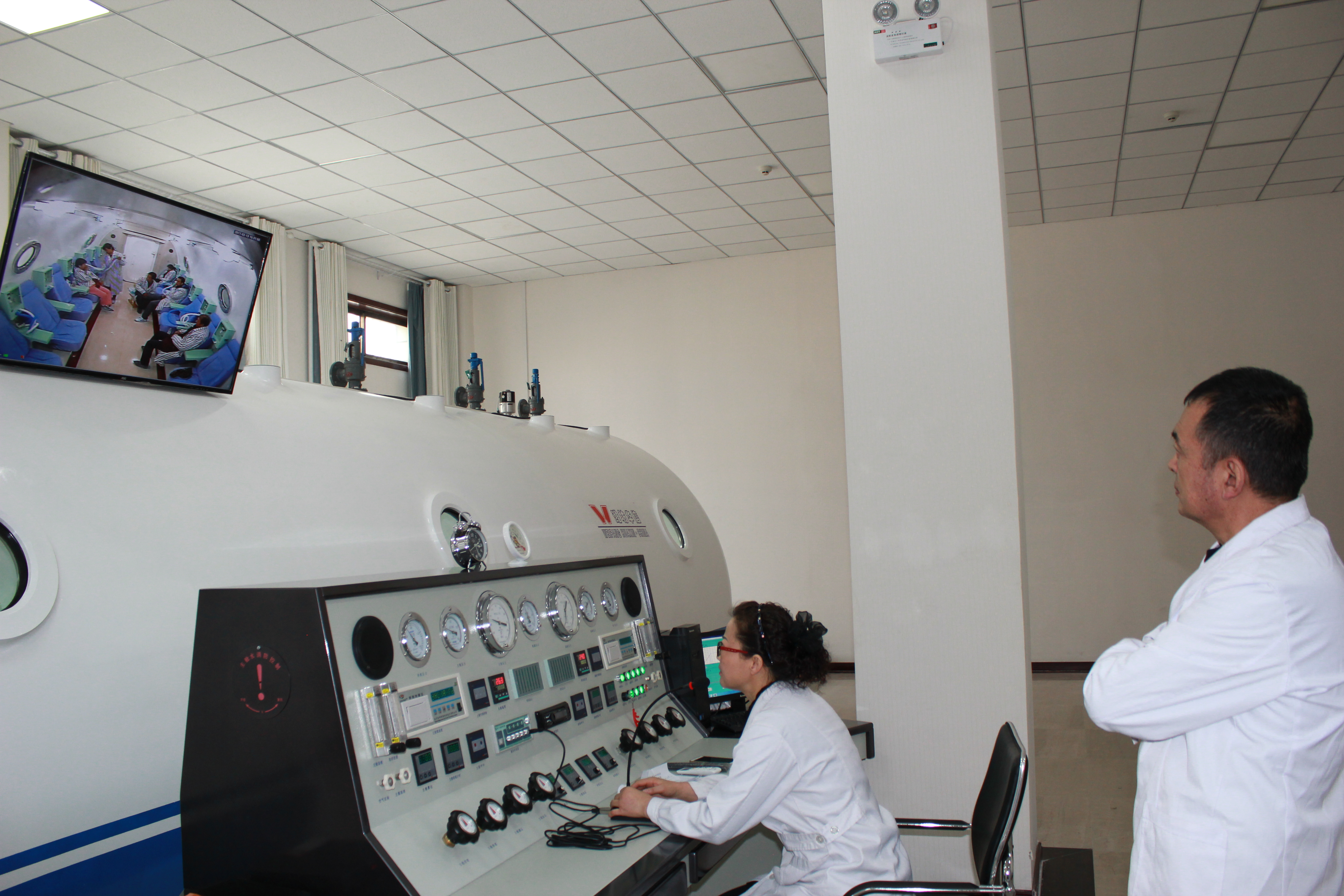 高壓氧艙一次可容納16人同時治療。氧艙配有微機操艙系統(tǒng)、有先進的電子監(jiān)視器、對講系統(tǒng)及靈敏的測氧儀,可嚴密觀察艙內(nèi)人員情況,提高了治療的安全性。