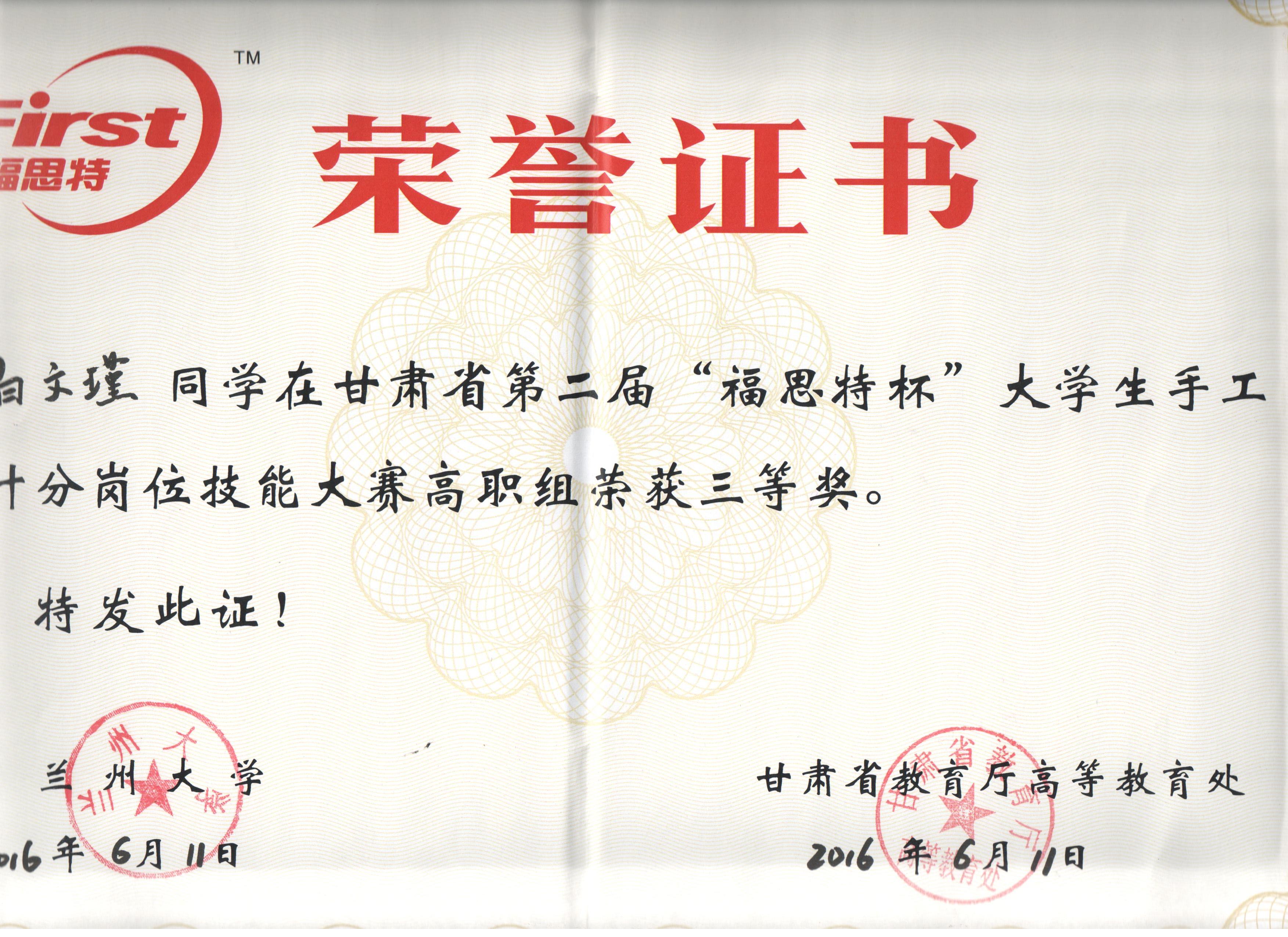 - 下一篇:我系學生在第三屆甘肅省大學生 “福思特杯”大賽中喜獲佳績[ 04-26 ]