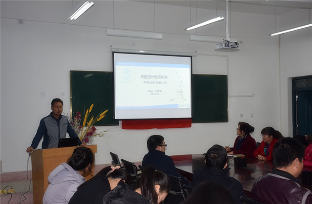 晏素珍就2016年我系教師培訓(xùn)工作做了簡單回顧與總結(jié),隨后蔡飛從美國文化入手,介紹了他們在美國加利福尼亞州社區(qū)學(xué)院學(xué)習的基本情況,分享了實踐教育教學(xué)的信息、理念、方法、感受。龔建軍從美國教育體系著手,分享了他在美國加利福尼亞州社區(qū)學(xué)院參加的“了解美國現(xiàn)代教育教學(xué)理念,全面提高骨干教師專業(yè)建設(shè)與實踐能力”培訓(xùn)中的所學(xué)所聞,重點介紹了美國職業(yè)教育體系和職業(yè)教育教學(xué)及學(xué)習模式。