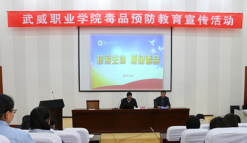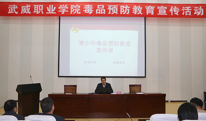 3月30日下午,院團(tuán)委聯(lián)合學(xué)生工作處、保衛(wèi)處在正德廳舉辦武威職業(yè)學(xué)院毒品預(yù)防教育宣傳活動(dòng),團(tuán)市委書記潘多民出席活動(dòng)并授課,學(xué)院各級(jí)團(tuán)干部270多人參加了活動(dòng)?;顒?dòng)由學(xué)生工作處處長(zhǎng)王守云主持。