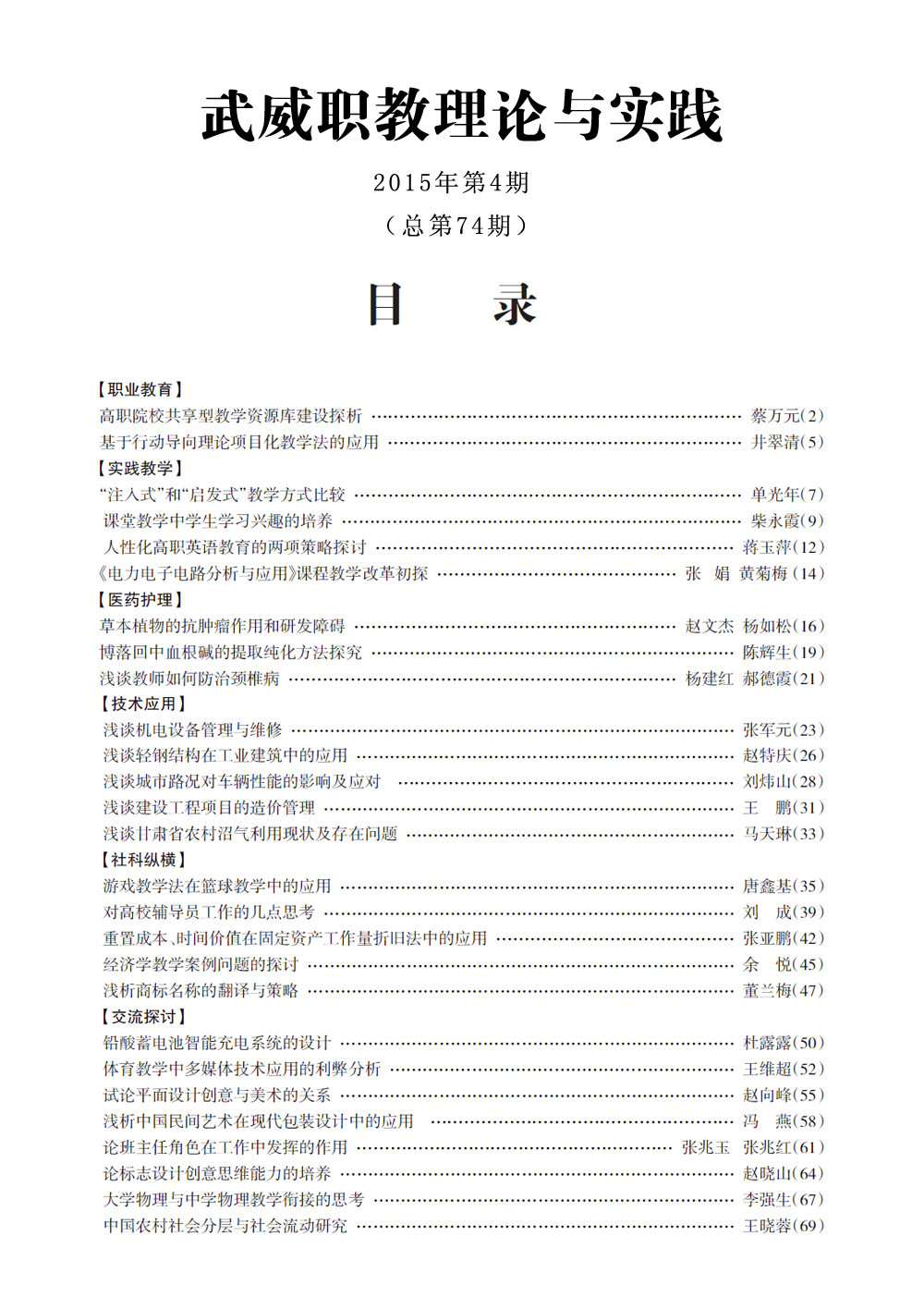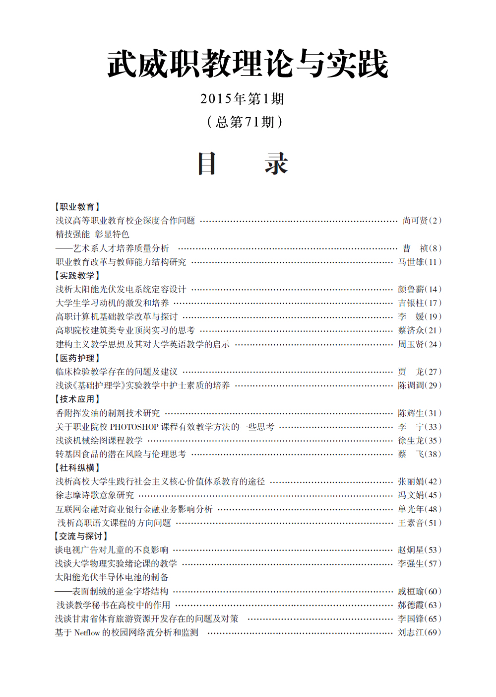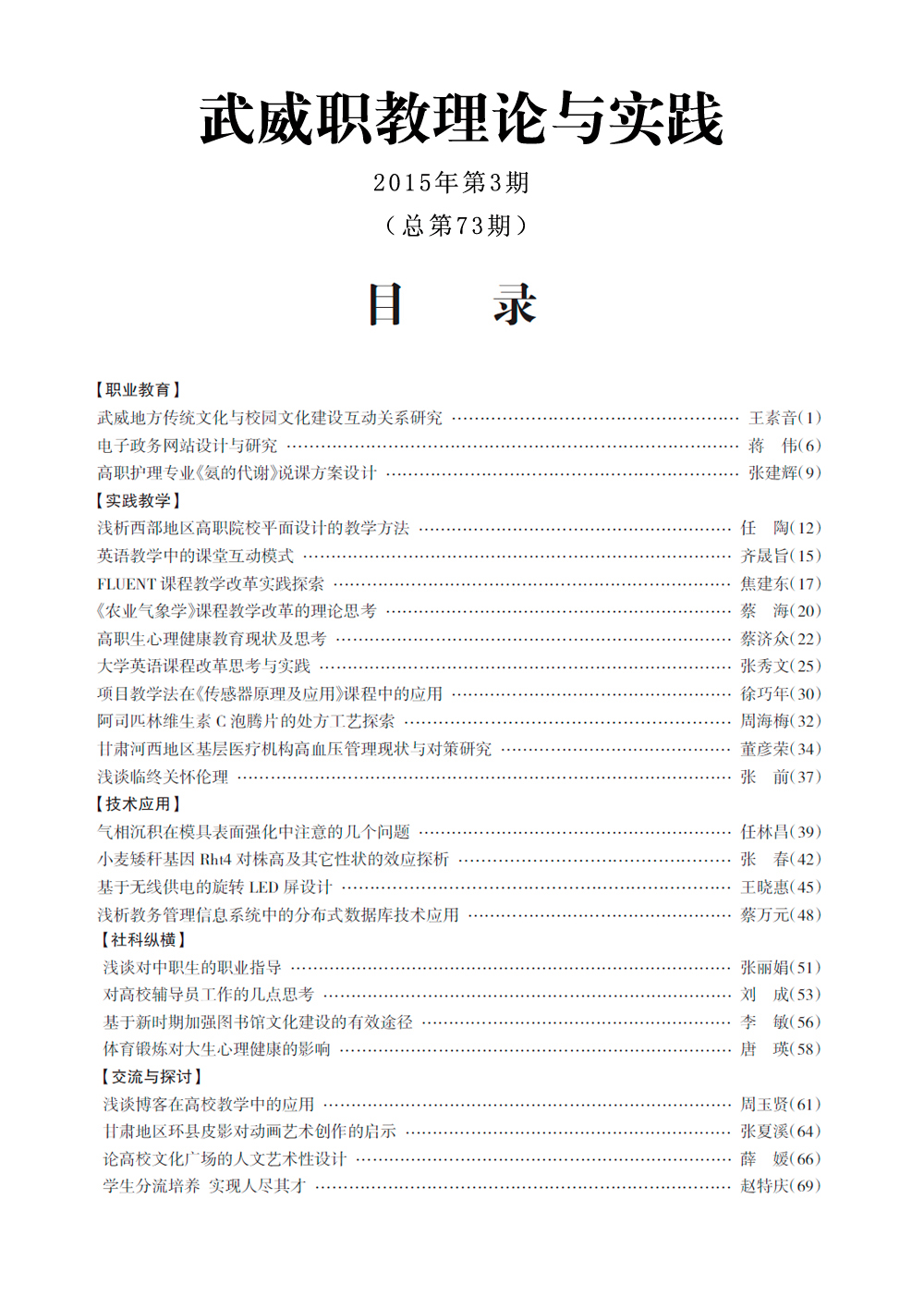2014年《武威職業(yè)學(xué)院學(xué)報(bào)》目錄
