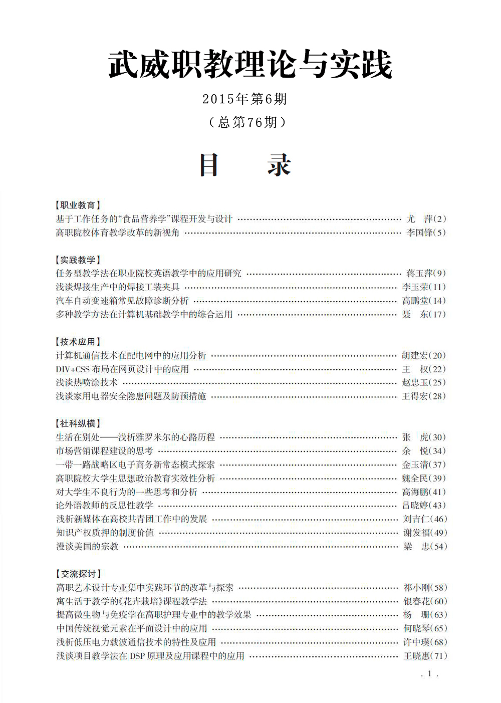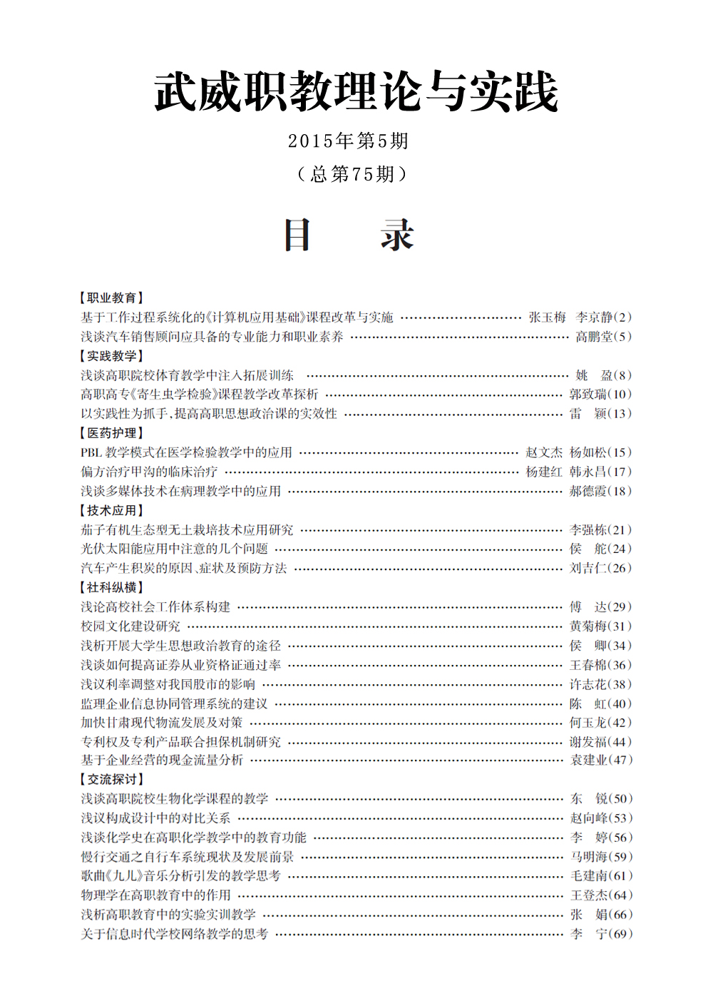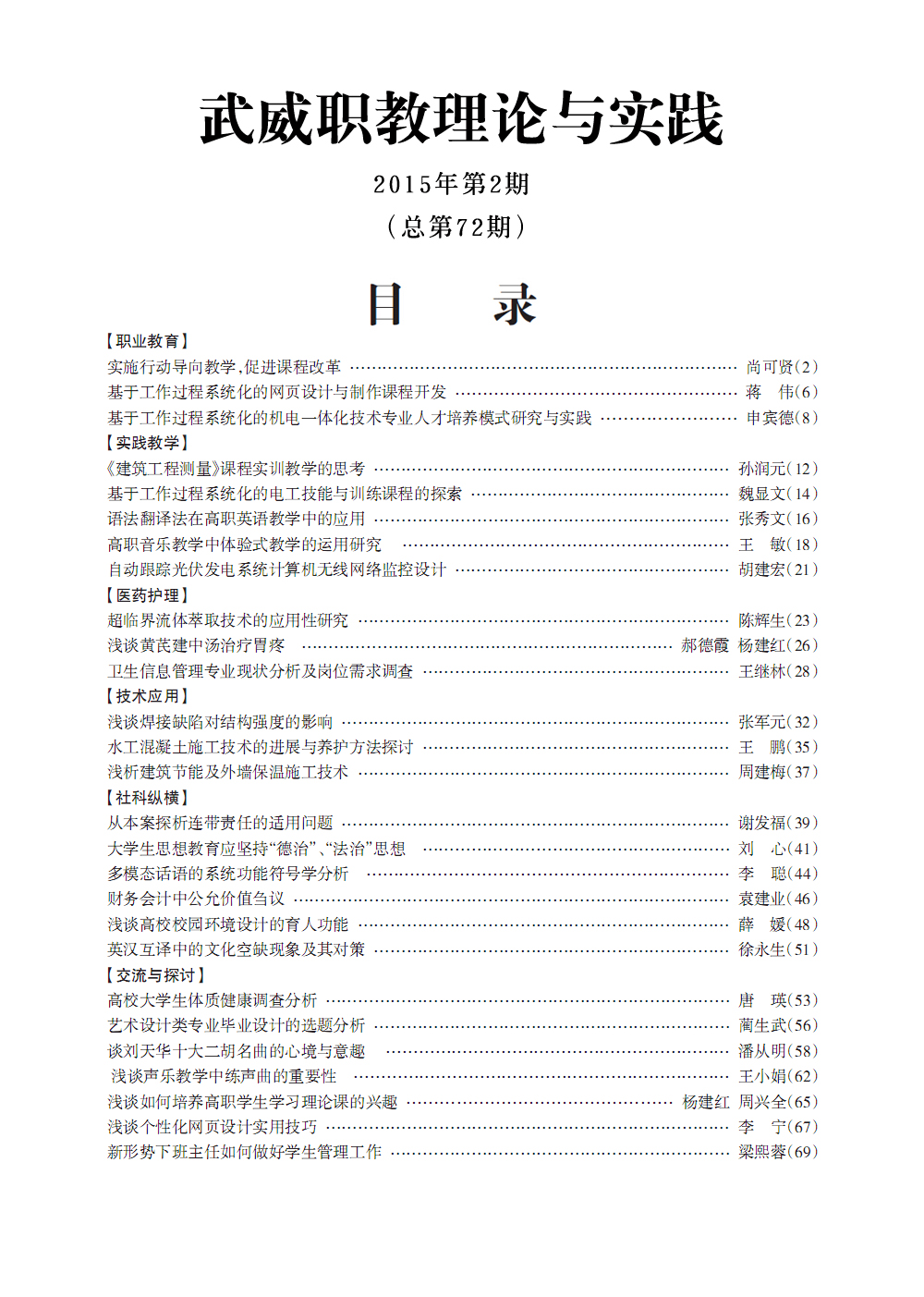 2014年《武威職業(yè)學(xué)院學(xué)報(bào)》目錄