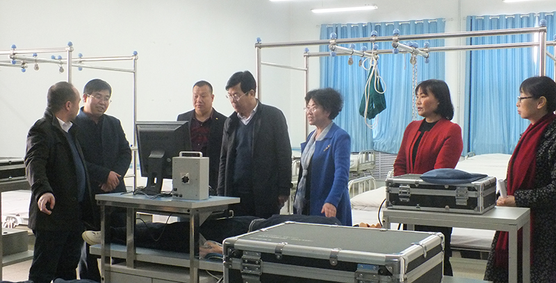 毛校長一行參觀了護(hù)理系的生命科技館、機(jī)能實訓(xùn)室、基護(hù)實訓(xùn)室、內(nèi)外科實訓(xùn)室等醫(yī)學(xué)類實訓(xùn)室,詳細(xì)了解了實驗設(shè)備的運行情況和實驗實訓(xùn)課程的教學(xué)管理模式。潘玉華向來賓們介紹了學(xué)院申辦臨床醫(yī)學(xué)專業(yè)的進(jìn)展,以及我院實訓(xùn)課程建設(shè)和籌建實驗實訓(xùn)室取得的成果。