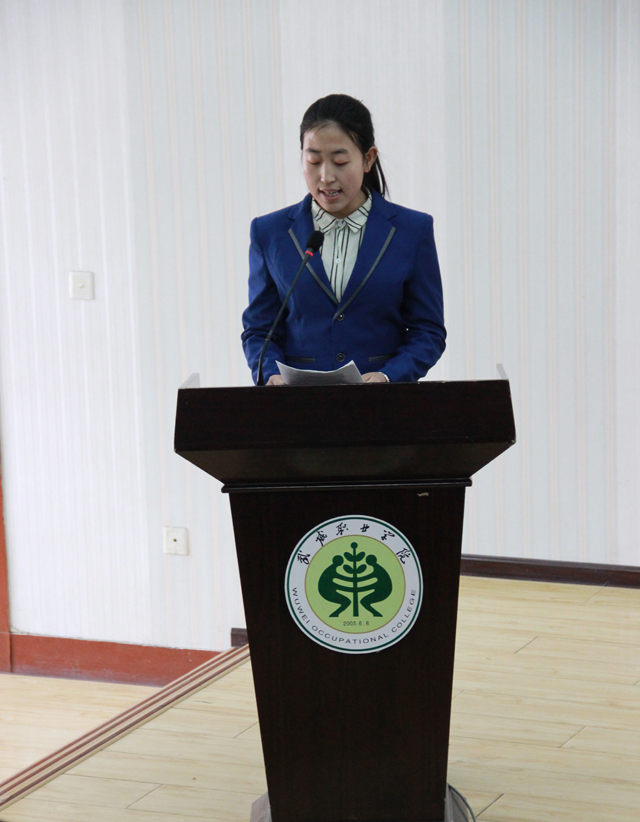 2013級(jí)王婷同學(xué)代表學(xué)生發(fā)出倡議,要胸懷大志,以崇高的理想信念提升前進(jìn)的動(dòng)力;要勤奮學(xué)習(xí),以淵博的知識(shí)打好前進(jìn)的根基;要呵護(hù)心靈,以更加健全的心智創(chuàng)造更好的成才之路。