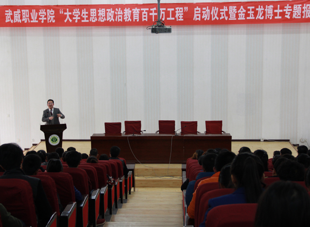 啟動(dòng)儀式后,學(xué)院心理學(xué)博士、副教授金玉龍為師生就 “就業(yè)與心理健康”做專題報(bào)告。(學(xué)生處 秦娜供稿)