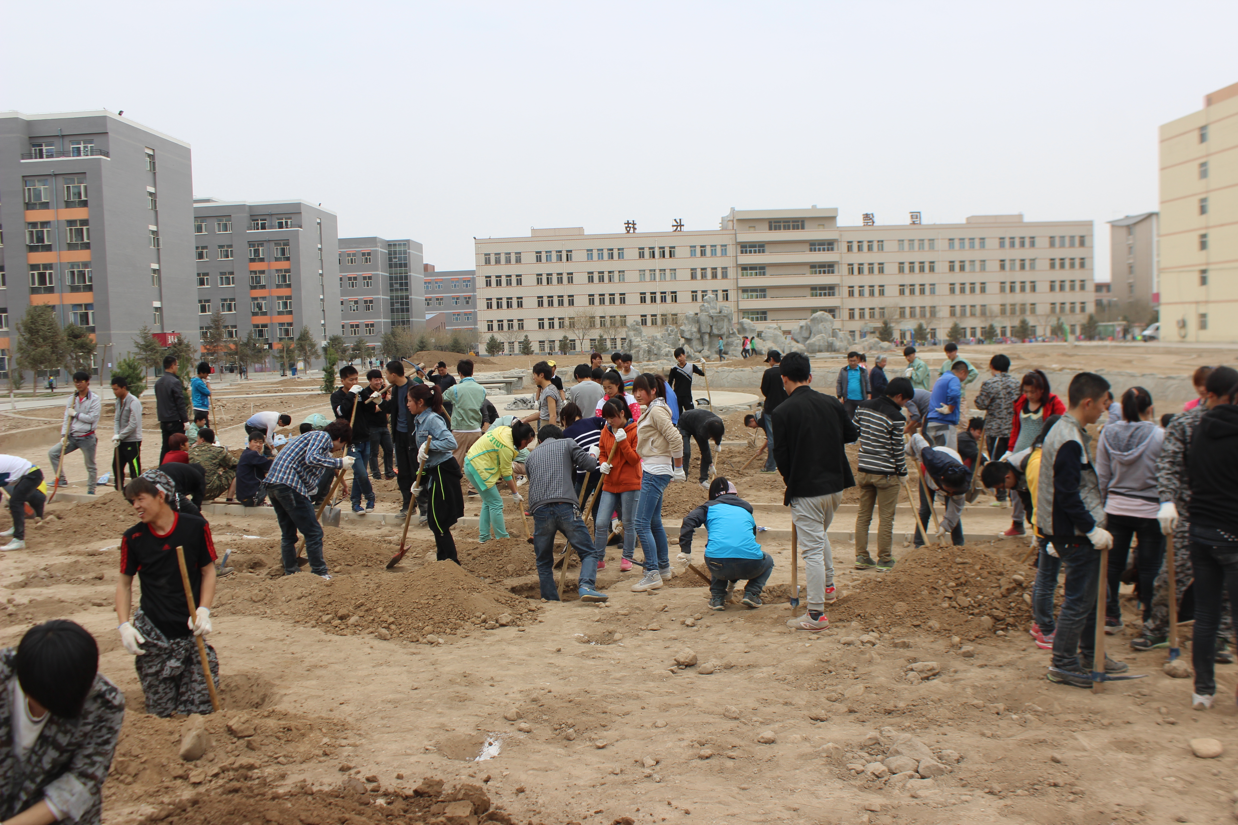 在植樹現(xiàn)場,220名師生積極投入到植樹活動中。他們用镢頭、鐵锨挖開樹坑,放入樹苗,然后細(xì)心地往坑中填土;樹苗栽好后認(rèn)真地扶正樹苗、踩實新土,整個植樹現(xiàn)場一片忙碌。經(jīng)過全系師生的共同努力,完成了學(xué)院一期擴(kuò)建景觀工程和體育場西側(cè)圍墻共200多棵樹苗的栽種任務(wù)。