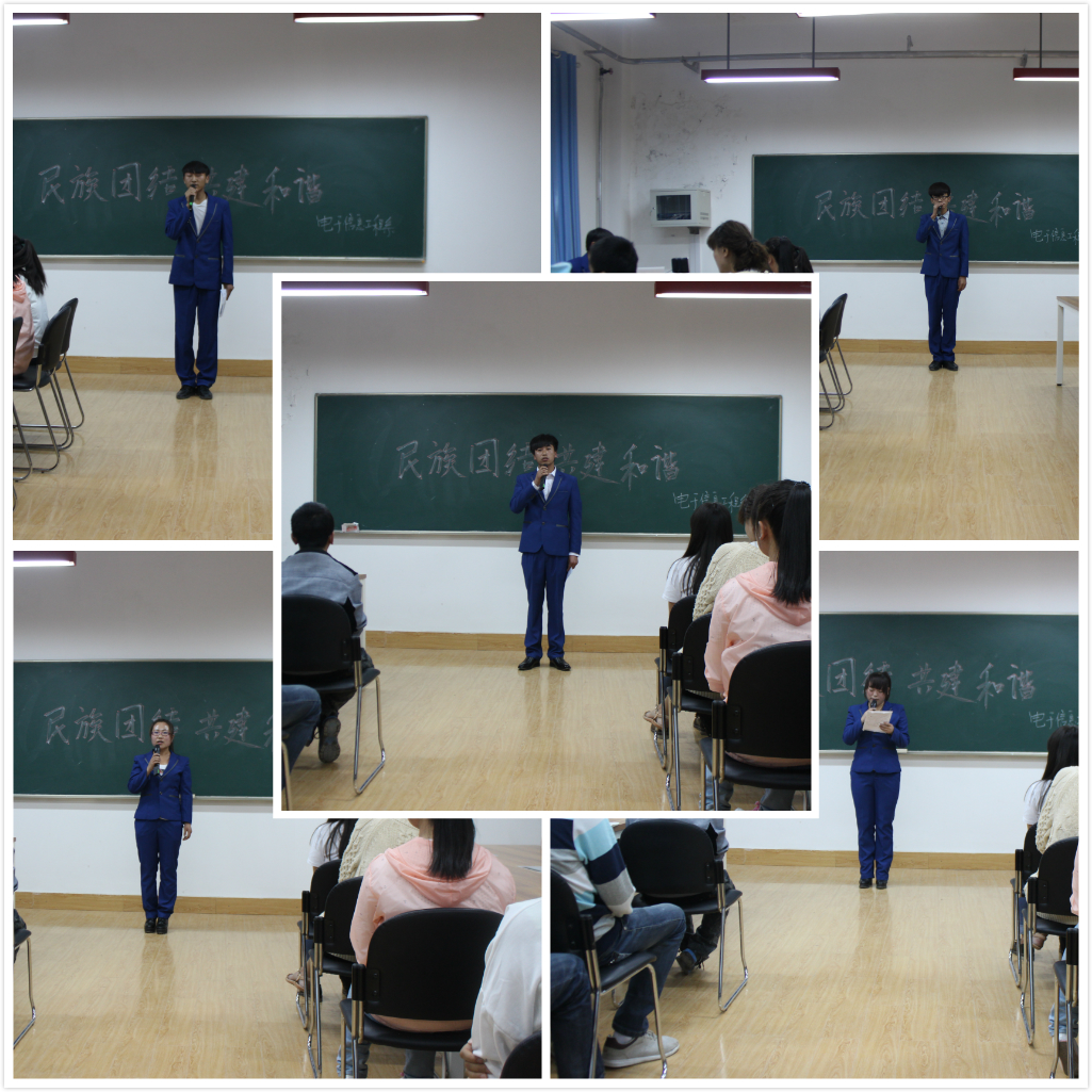 5月20日晚,由電子信息工程系舉辦的“謳歌民族團(tuán)結(jié)、建設(shè)和諧校園”主題演講比賽在尚德樓5樓順利舉行。系輔導(dǎo)員鄧偉華、團(tuán)總支書記唐宗舜及其他三位班主任老師擔(dān)任評(píng)委。