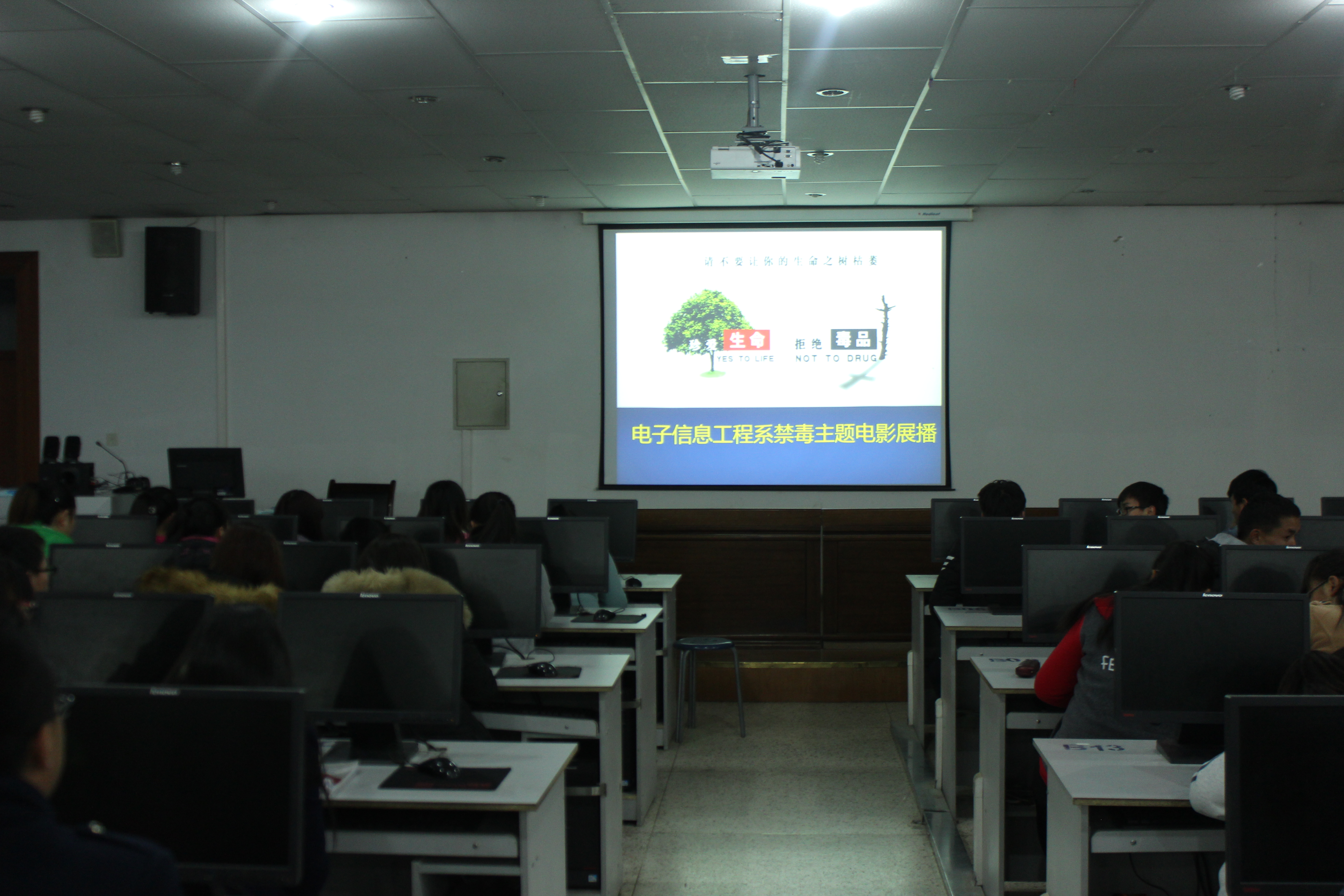 為進一步提高大學生的禁毒意識和拒毒能力,切實加強毒品預防教育,貫徹落實《武威職業(yè)學院關于開展禁毒“五個一”活動的通知》的要求,12月2日晚8時,電子信息工程系組織學生代表200余人在尚德樓十一號機房觀看毒品危害的主題電影。