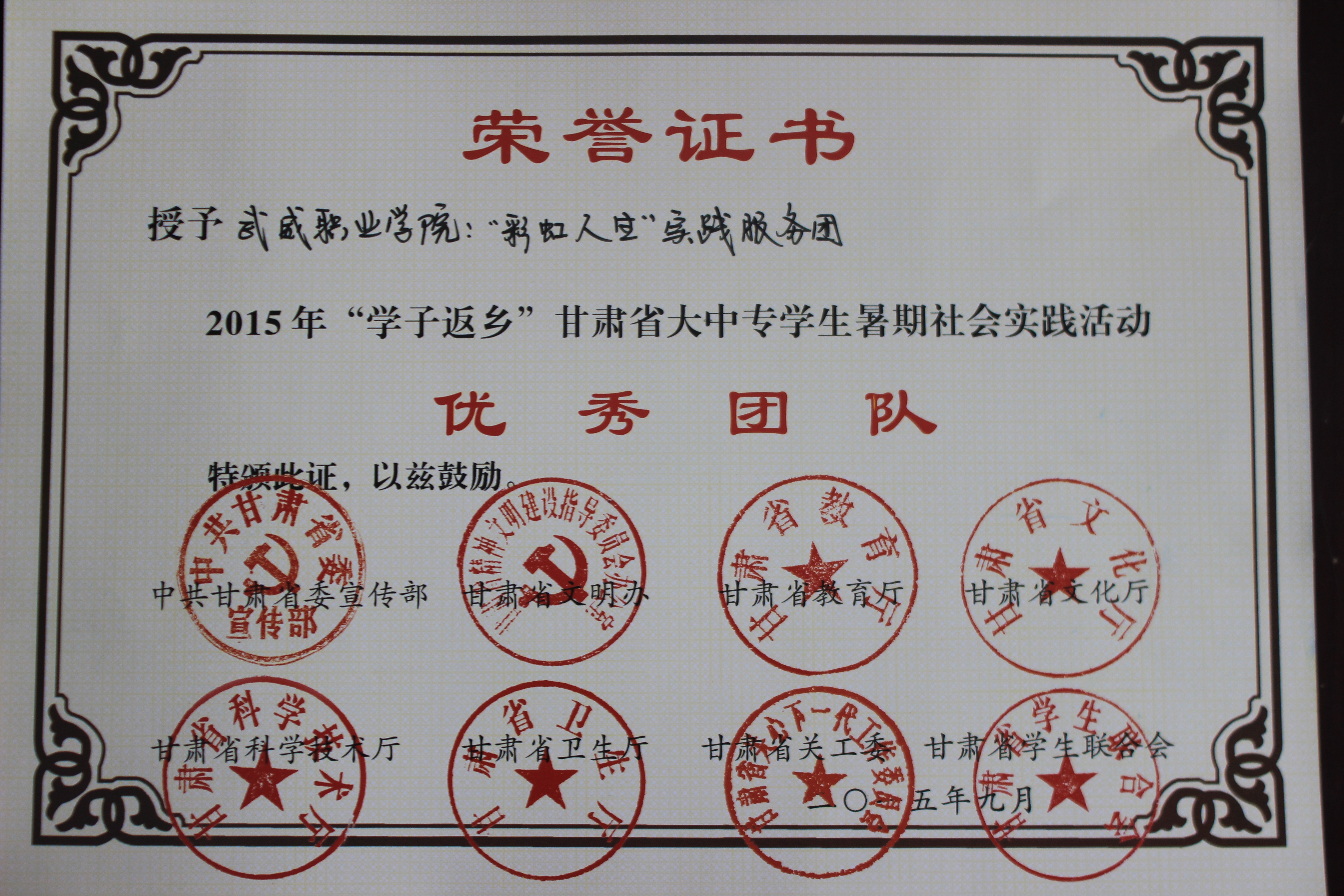 2015年“學(xué)子返鄉(xiāng)”甘肅省大中專學(xué)生暑期社會(huì)實(shí)踐活動(dòng)-優(yōu)秀團(tuán)隊(duì)