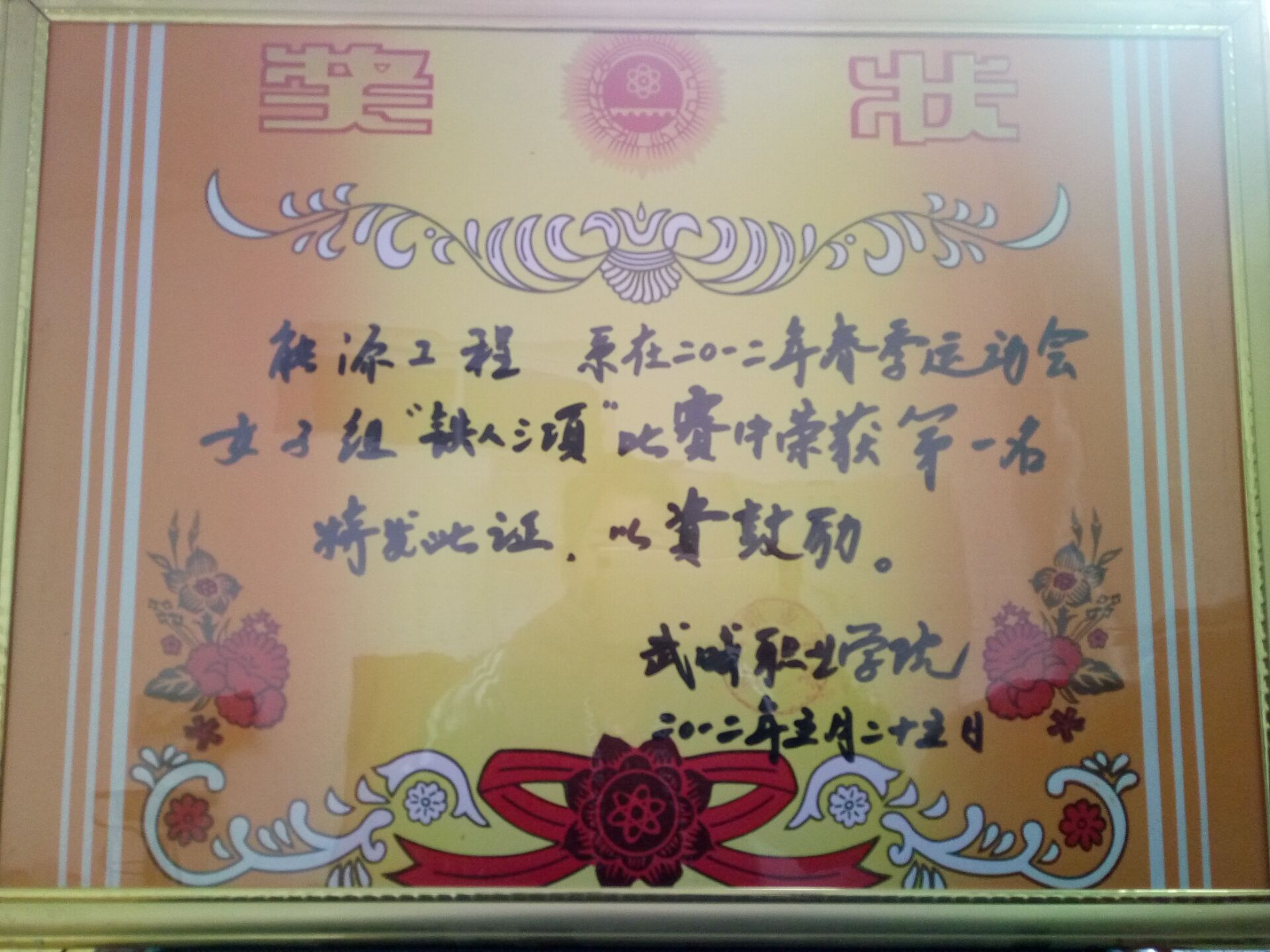 我系代表隊(duì)在2012年春季運(yùn)動(dòng)會(huì)女子組“同舟共濟(jì)”比賽中榮獲第一名獎(jiǎng)