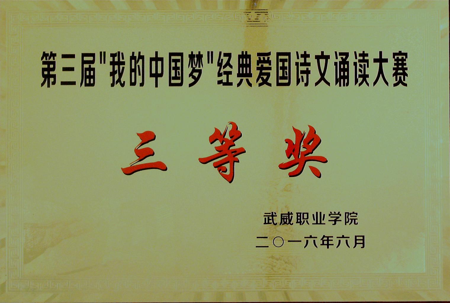 第三屆“我的中國夢”經典愛國詩文誦讀大賽三等獎