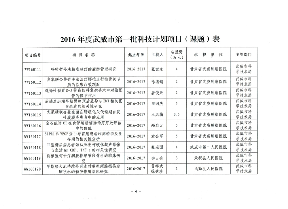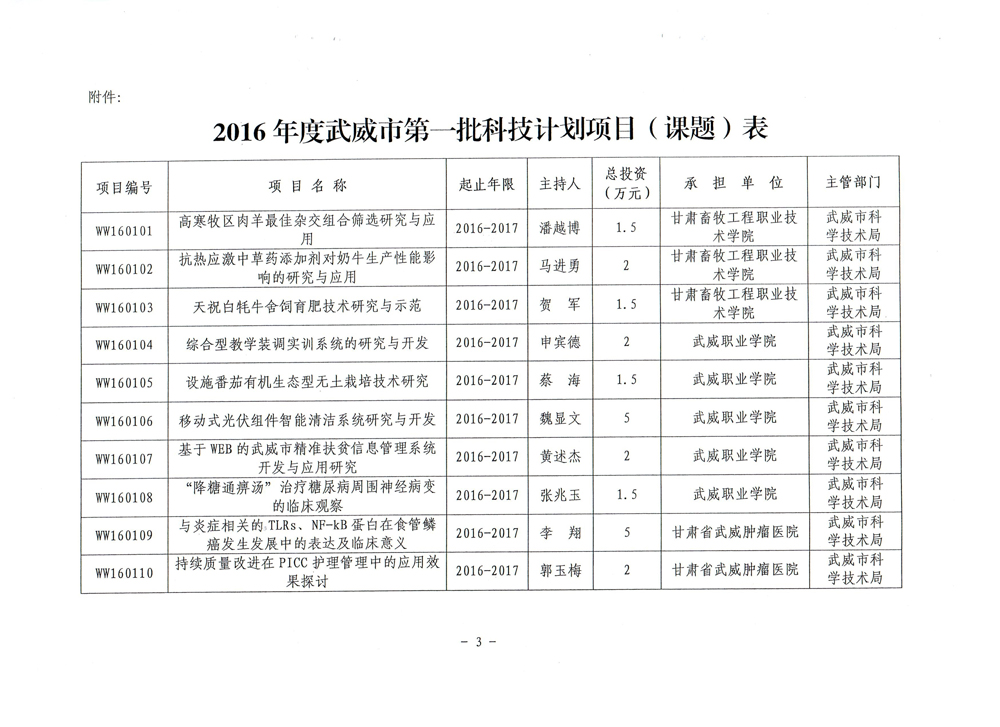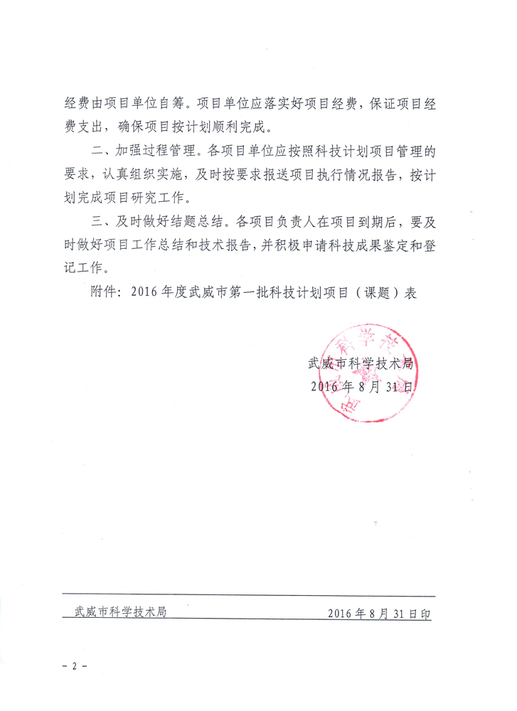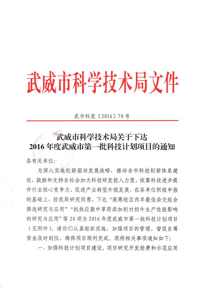 武威市科學(xué)技術(shù)局關(guān)于下達(dá)2016年度武威市第一批科技計劃項目的通知