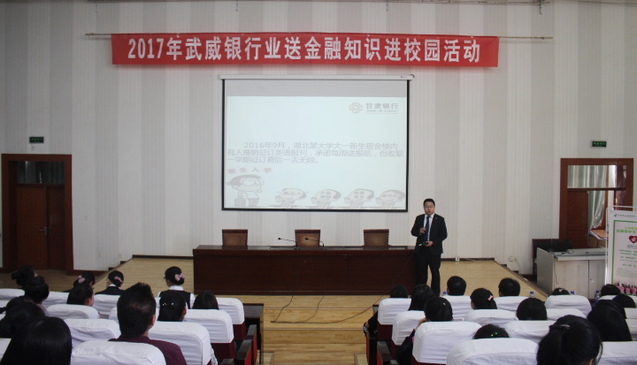 為幫助同學們了解和掌握銀行業(yè)消費常識,增強科學合理使用銀行產(chǎn)品和服務的能力,提升同學們對金融業(yè)務的風險防范和識別能力,5月11日下午,經(jīng)濟管理系與甘肅銀行武威分行、郵政儲蓄銀行武威市分行在學院正德廳聯(lián)合開展了“銀行業(yè)送金融知識進校園”宣講活動。經(jīng)濟管理系會計電算化、證券與期貨專業(yè)的350余名同學參加了此次宣講會。