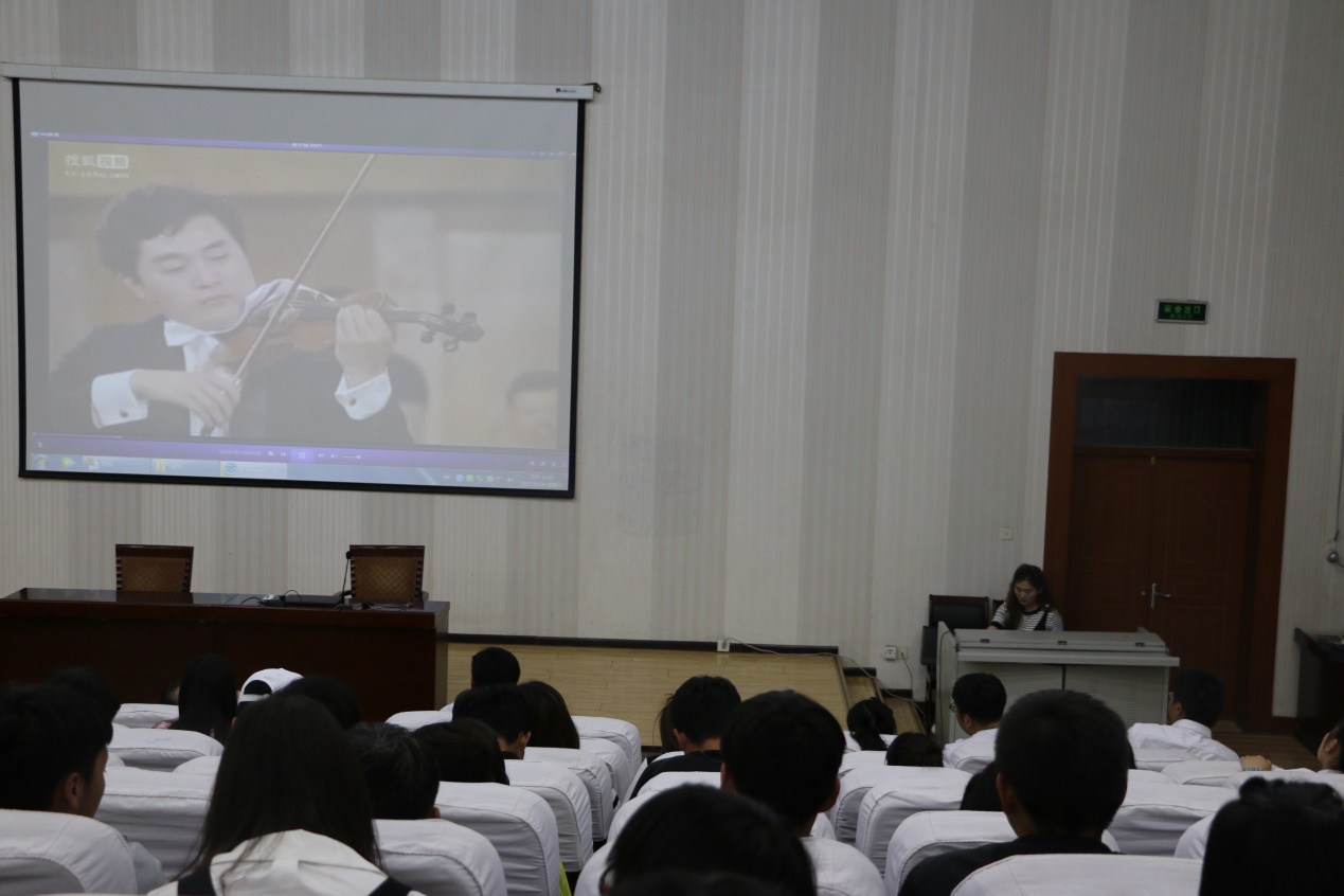 伴著優(yōu)美的音樂旋律王敏副教授開始了講座,王老師首先介紹了音樂發(fā)展歷史和音樂鑒賞的基礎知識,然后以我國著名作曲家陳鋼、何占豪先生創(chuàng)作的小提琴協(xié)奏曲《梁山伯與祝英臺》為題材,分階段講述了“鳥語花香”、“草橋結拜”、“英臺抗婚”、“投墳化蝶”等內(nèi)容和藝術場景。剖析了作品在管樂、和以小提琴、大提琴為主的弦樂及民樂有機結合的高超藝術境界,講座過程中王老師結合《梁?!穮f(xié)奏曲音視頻資料,演繹了梁山伯與祝英臺凄美的愛情故事。