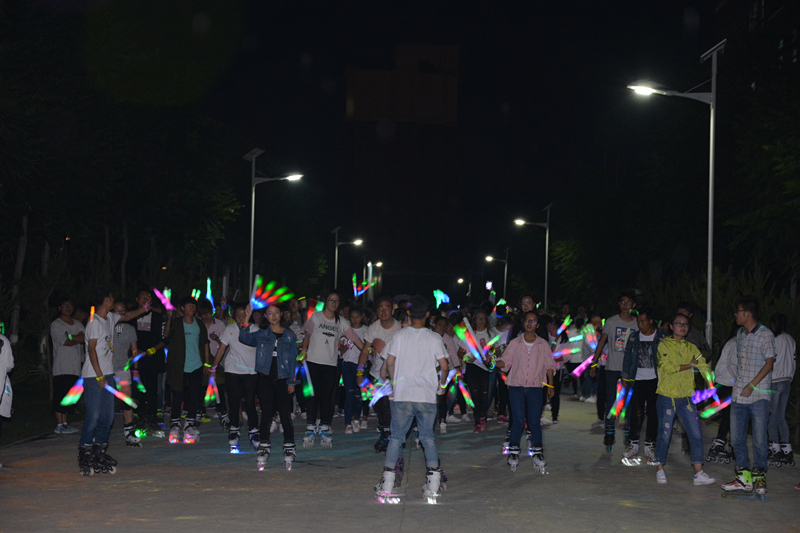 下午三點,學院團委宋文龍老師在啟動儀式上做了熱情洋溢的致辭,團學干部帶領參賽選手開啟了本次活動的奔跑。本次活動由“趣味沖關”“彩虹跑”“熒光夜跑”三個環(huán)節(jié)組成。“趣味沖關”由一系列小游戲組成,需要大家齊心協(xié)力、互相配合完成,同學們滿懷激情,在奔跑的同時體驗著合作的趣味與快樂。掌聲、笑聲、加油聲此起彼伏,選手與觀眾互動交流,整個過程充滿了愉悅的氣氛。下午五點開啟了整個活動中最精彩的“彩虹跑”,同學們手捧玉米粉在慢跑中相互揮灑,多彩的玉米粉在他們身上留下了青春的印記。隨著夜幕降臨,精彩的“熒光夜跑”活動隨之開始,同學們手帶熒光環(huán),舞動熒光棒,在輪滑社成員的帶領下繞著校園跑動。熒光點綴著夜色,歡快的音樂、青春的聲音充斥著整個校園?;顒咏Y束后,在學院東門小廣場舉行了自由晚會,同學們圍成一圈,在主持人的帶動下做互動小游戲、自由演唱,一陣陣歡聲笑語回蕩在整個校園。