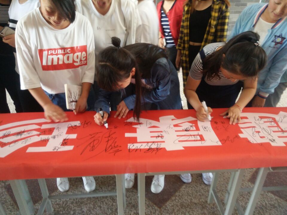5月22日,系團(tuán)學(xué)會(huì)制作橫幅標(biāo)語(yǔ)“關(guān)注健康、珍愛生命”,召集簽名活動(dòng)。
