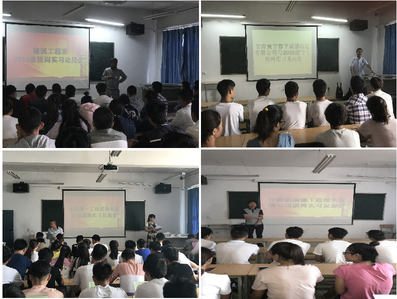 6月8日至16日,甘肅寰宇數(shù)字遙感信息有限公司、甘肅新一工程咨詢有限公司、國誠集團(tuán)、蘭州凱瑞德工程有限公司、武威盛大集團(tuán)等實(shí)習(xí)接收單位派專人來校,舉辦企業(yè)宣講會(huì),詳細(xì)地介紹了用人單位的管理制度、日常生活、工作崗位、薪酬待遇等,并與系上洽談了學(xué)生頂崗實(shí)習(xí)合作辦法、責(zé)任義務(wù)、安全保障、就業(yè)等方面的合作細(xì)節(jié)。