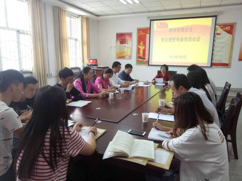 7月5日,藥學系黨總支在明遠樓103室召開審議接受預備黨員會議,討論接收魏潤明、董婉娩、呂小剛、藍曉芳、白登權和張婷六名同志入黨事宜。會議由系黨總支書記何毅同志主持,藥學系全體黨員、發(fā)展對象和部分入黨積極分子參加了會議。