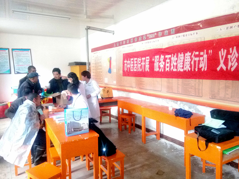 走訪調(diào)研活動(dòng)結(jié)束后,醫(yī)務(wù)人員在村會(huì)議室開(kāi)展送醫(yī)送藥義診活動(dòng)。村民們踴躍前來(lái)診病,都說(shuō)城里的大夫好,不但免費(fèi)為我們開(kāi)方,而且還免費(fèi)送藥。