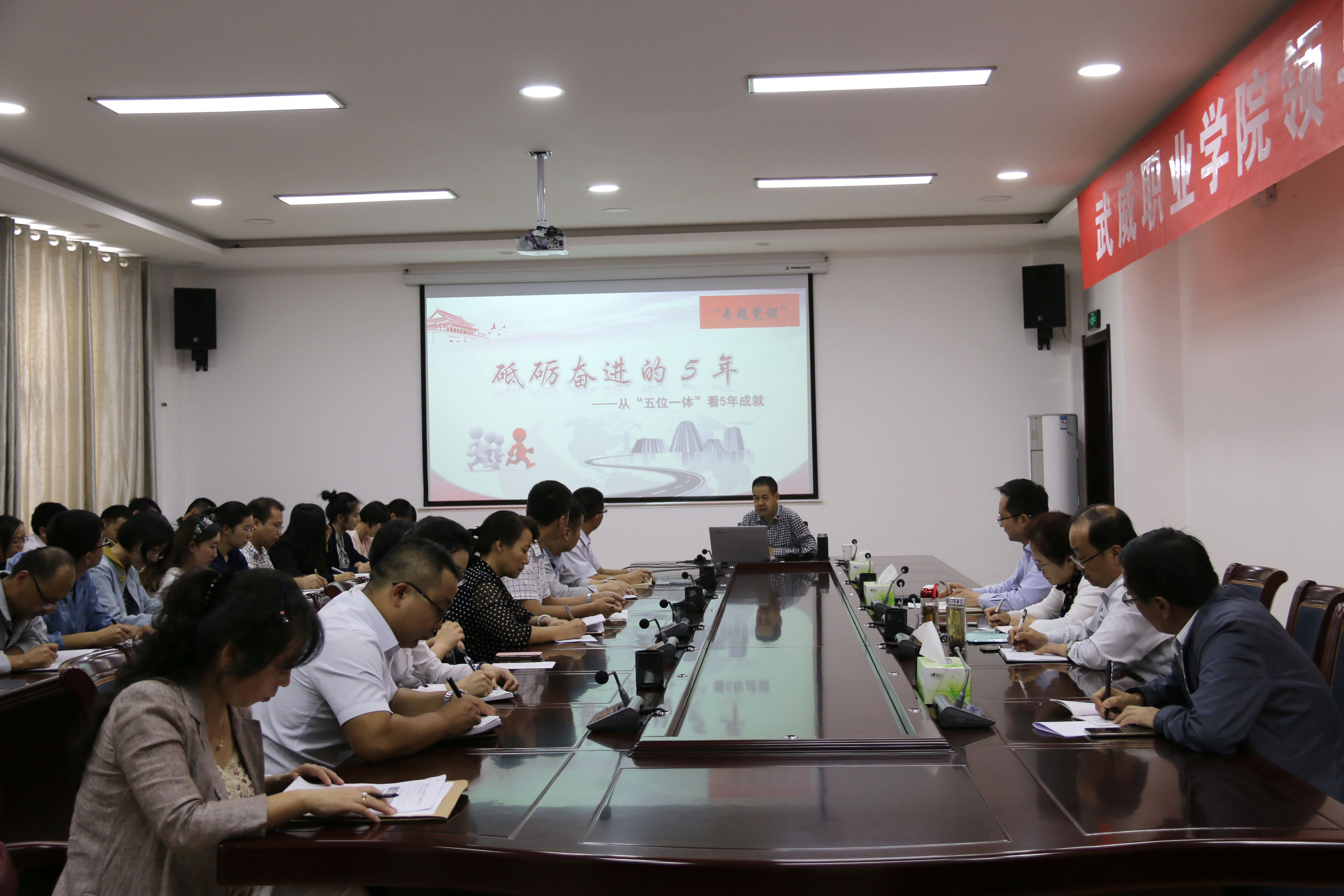 翟存祥作題為《砥礪奮進(jìn)的5年—從“五位一體”看五年成就》黨課報(bào)告。他從經(jīng)濟(jì)發(fā)展、民主政治、文化建設(shè)、改善民生及生態(tài)文明五個(gè)方面系統(tǒng)講述了黨的十八大以來(lái),以習(xí)近平同志為核心的黨中央,通過(guò)實(shí)施“四個(gè)全面”戰(zhàn)略布局、“五位一體”總體布局與五大發(fā)展理念等一系列新思路、新戰(zhàn)略、新舉措,使黨和國(guó)家事業(yè)取得的歷史性成就。