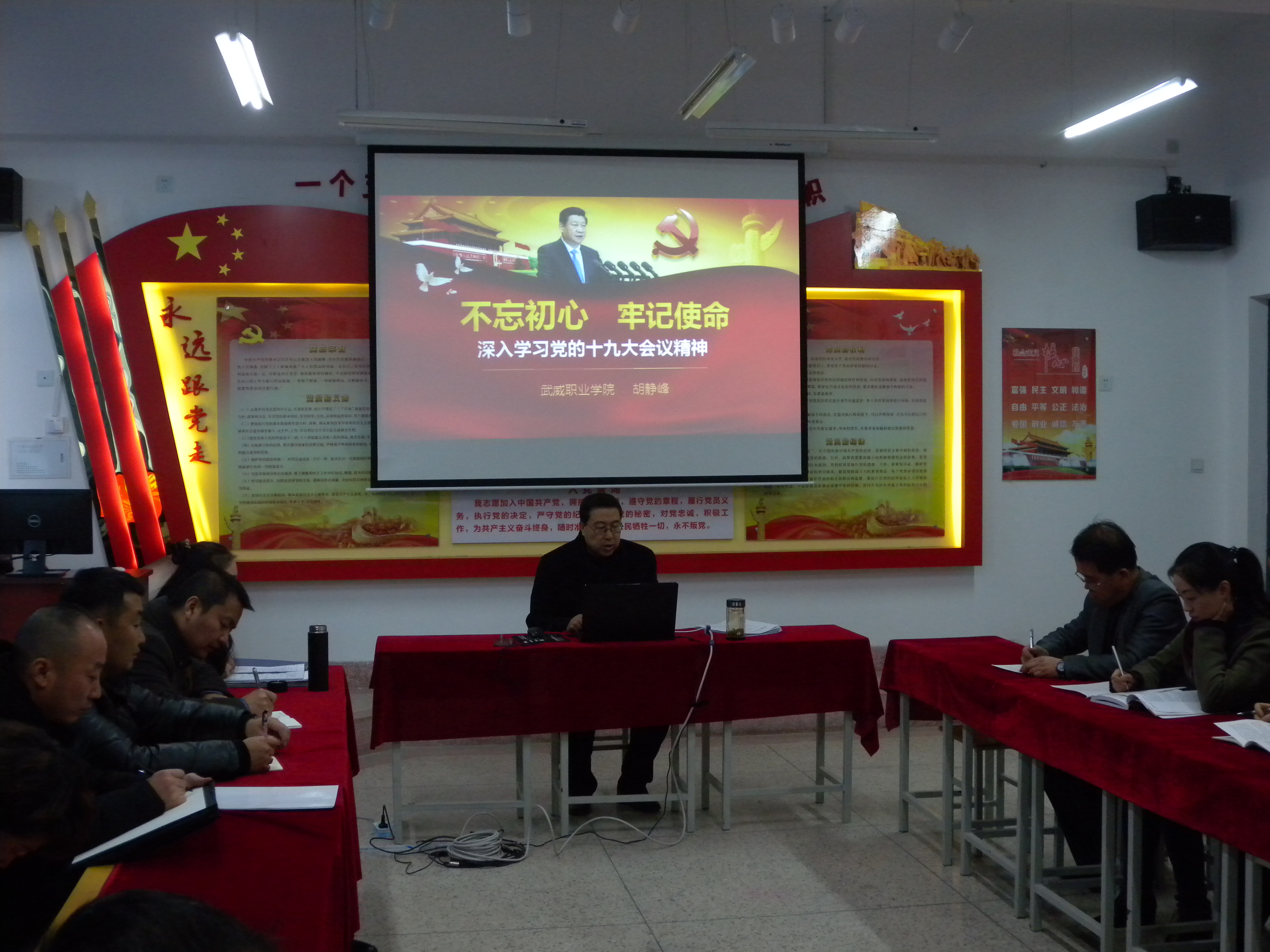 為深入學(xué)習(xí)黨的十九大會議精神,人文藝術(shù)教育系黨總支于2017年11月28日下午在勵勤樓209黨員活動室開展了書記講黨課活動。黨課由胡靜峰同志主講,題目為《不忘初心 牢記使命--深入學(xué)習(xí)黨的十九大會議精神》,全體黨員參加了此次活動。