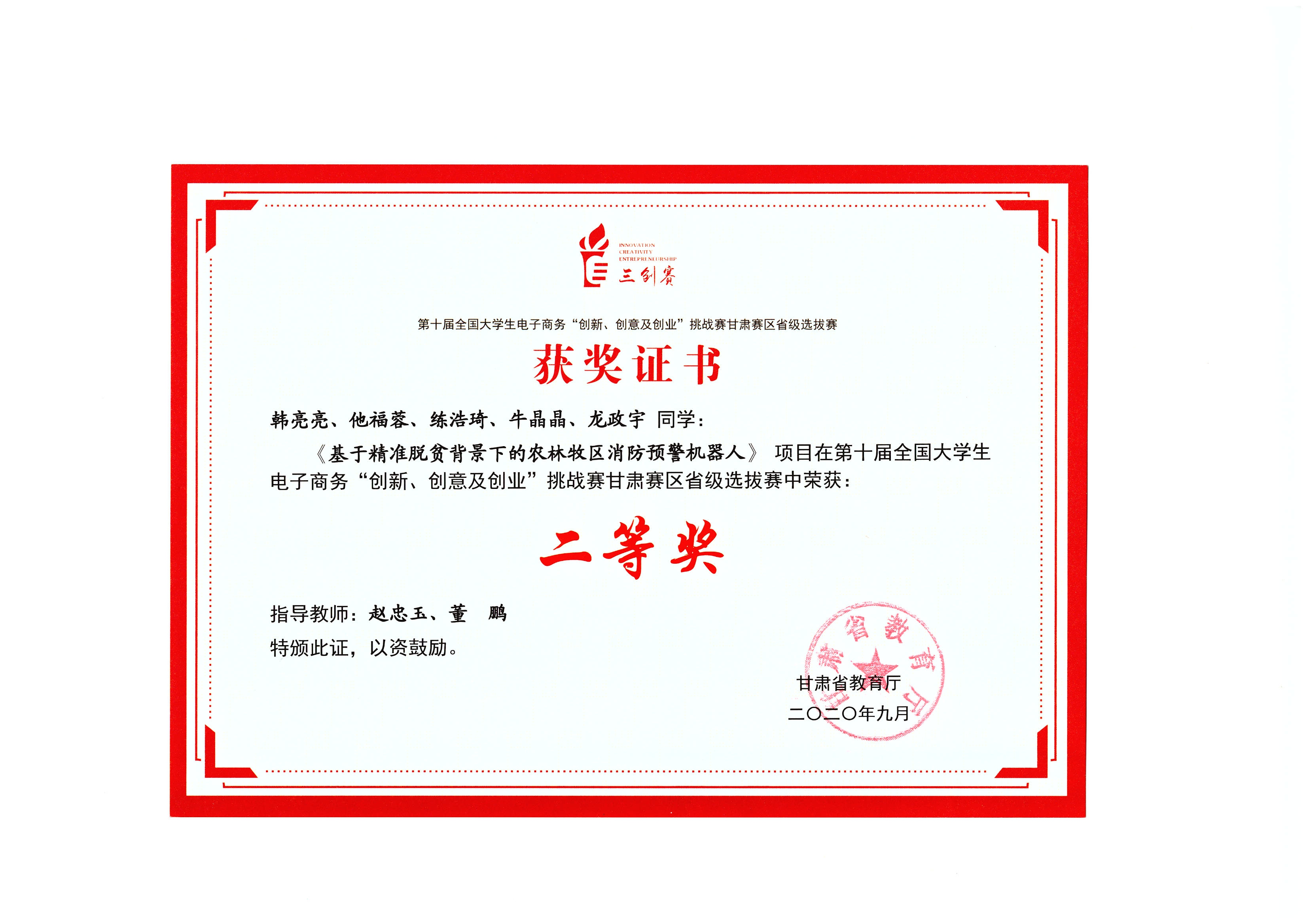 第六屆中國(guó)國(guó)際“互聯(lián)網(wǎng)+”大學(xué)生創(chuàng)新創(chuàng)業(yè)大賽甘肅省分賽職教賽道《面向農(nóng)林牧區(qū)的智慧消防預(yù)警衛(wèi)士的研制及其產(chǎn)業(yè)化》