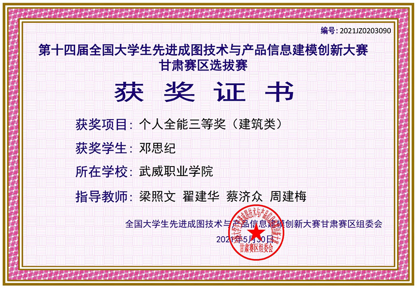 第十四屆全國大學生先進成圖技術(shù)與產(chǎn)品信息建模創(chuàng)新大賽甘肅賽區(qū)選拔賽獲個人全能三等獎(建筑類)