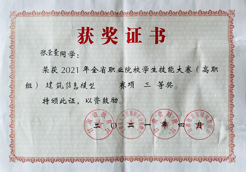 2021年全省職業(yè)院校學生技能大賽(高職組)建筑信息模式賽項三等獎