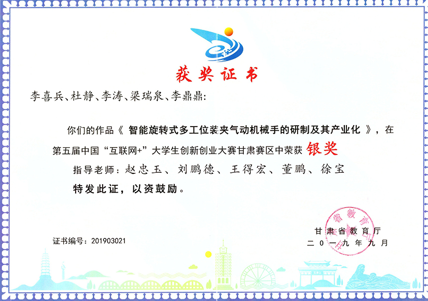第五屆中國(guó)“互聯(lián)網(wǎng)+”大學(xué)生創(chuàng)新創(chuàng)業(yè)大賽甘肅賽區(qū)《智能旋轉(zhuǎn)式多工位裝夾氣動(dòng)機(jī)械手的研制及其產(chǎn)業(yè)化》